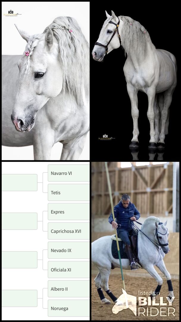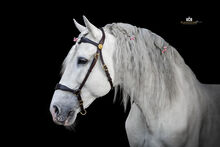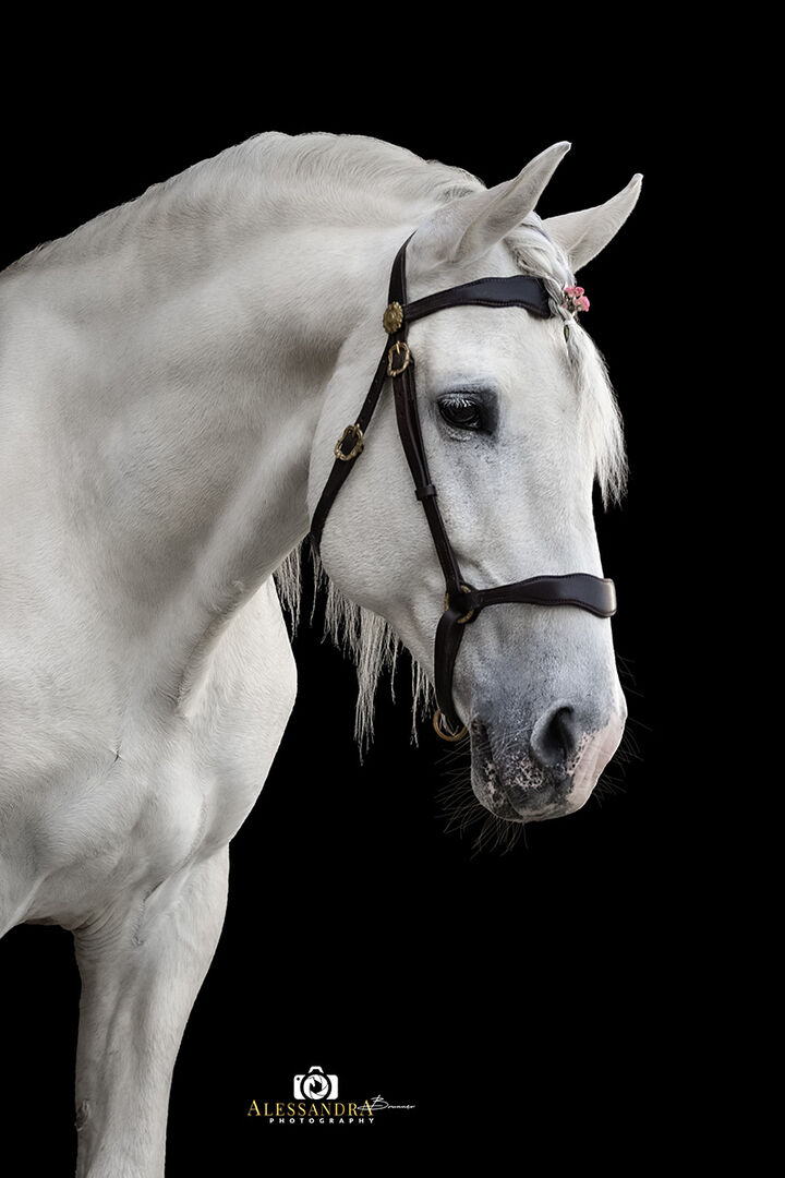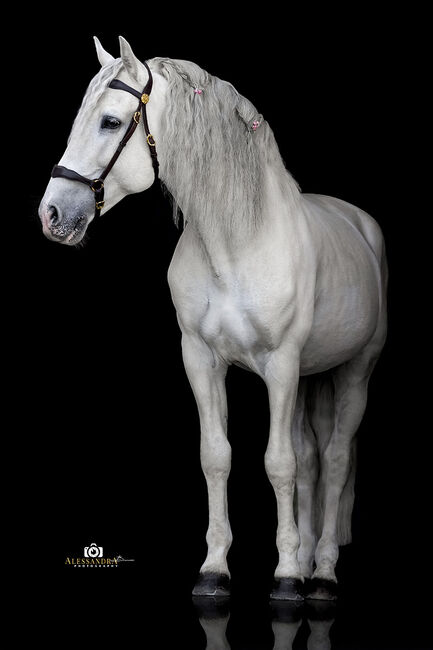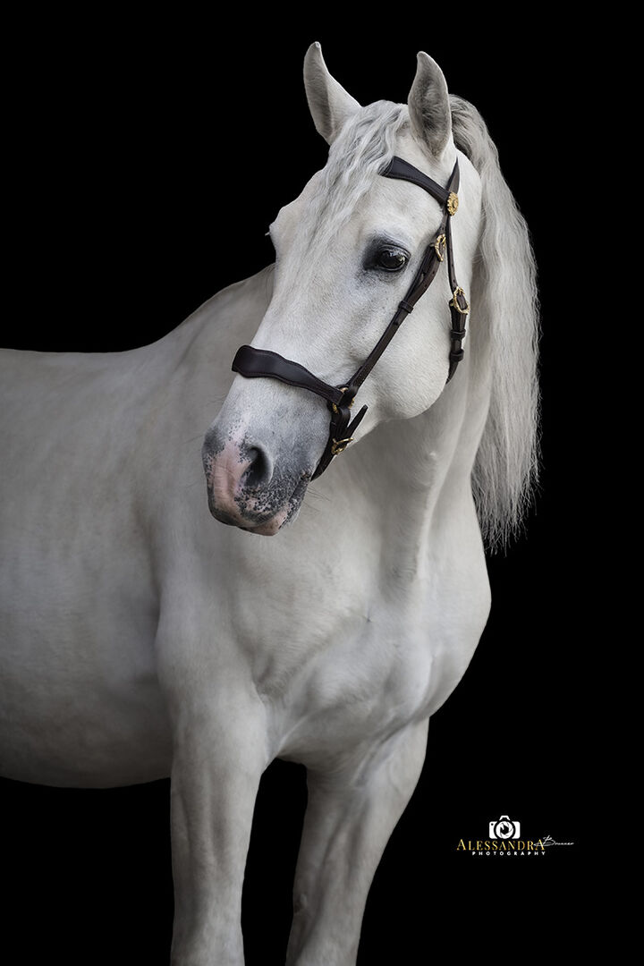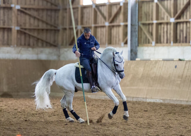 Deze goedgekeurde Pura Raza Española hengst werkt op het hoogste niveau onder een professionele ruiter, maar kan net zo goed worden gereden door jongeren en in lessen in hoge oefeningen. We waarderen hem om zijn sterke zenuwen, eerlijkheid en rechtvaardigheid tegenover zwakkere ruiters. Als leraar is dit paard onbetaalbaar, omdat hij zijn ruiter op elk moment een spiegel voorhoudt.