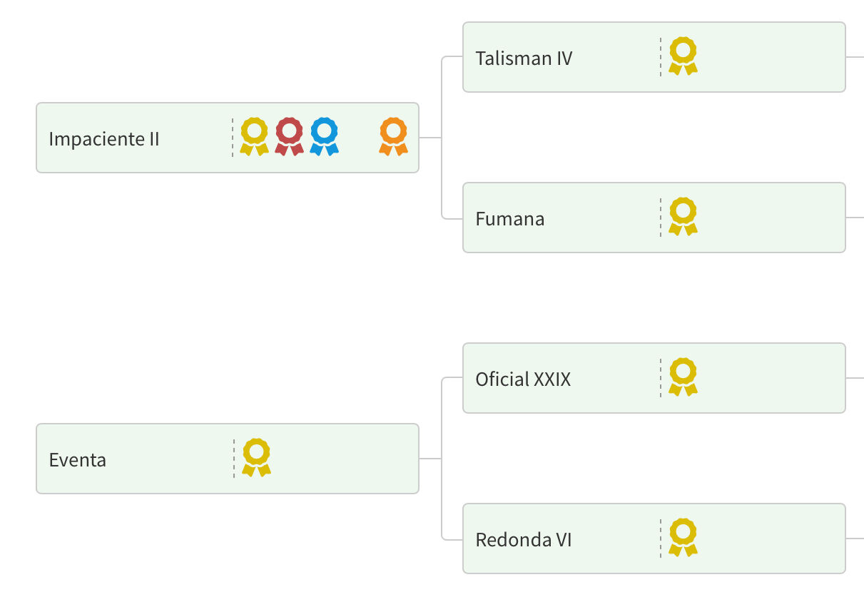 Puskas is basisgediplomeerd met een licentie-index van meer dan 110 en komt uit de allerbeste lijnen (Yeguada Susaeta, Benitez, Bohorquez). Als evenbeeld van zijn wereldberoemde vader, de elitehengst "Impaciente II", laat onze dressuurcrack niets te wensen over.