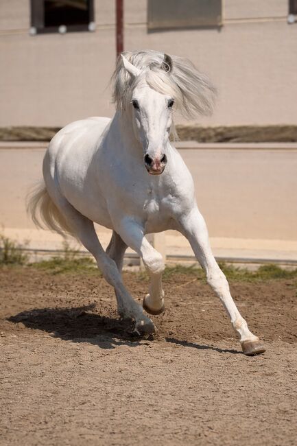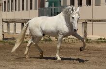 Puskas de Susaeta - PRE Pura Raza Espanole, hengst, 14 jaar oud, schimmel - Puskas de Susaeta is onze absolute superster! Hij is een uitmuntende en zeer getalenteerde dressuurcrack op St George niveau (PSG niveau). Vanaf het eerste moment maakt hij indruk met zijn aanwezigheid, zijn eersteklas exterieur met een uitstekende bovenlijn en enorme schoudervrijheid. Hij maakt ook indruk met zijn bijzondere, veelgelaagde karakter. Puskas wil graag nummer 1 zijn en wil onverdeelde aandacht - hij is op zoek naar een waardige danspartner.