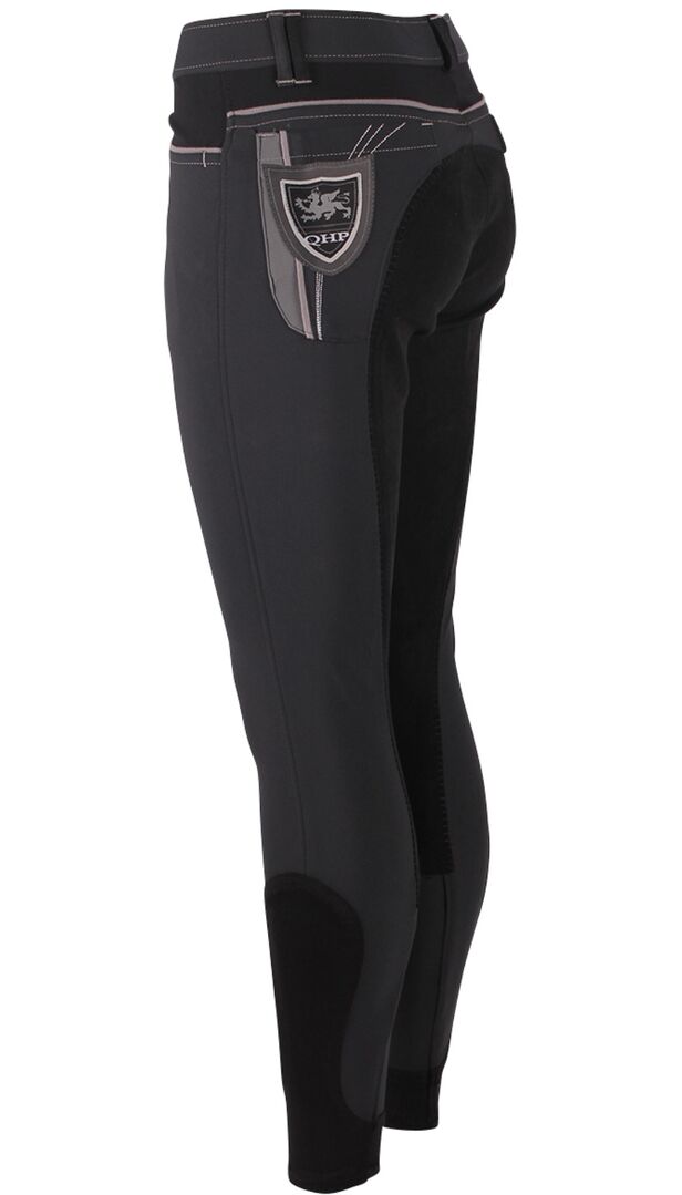 QHP rijbroek, grijs, volledige zit zwart, maat 46 - Ik verkoop een paar zelden gedragen "heup" rijbroeken van QHP.