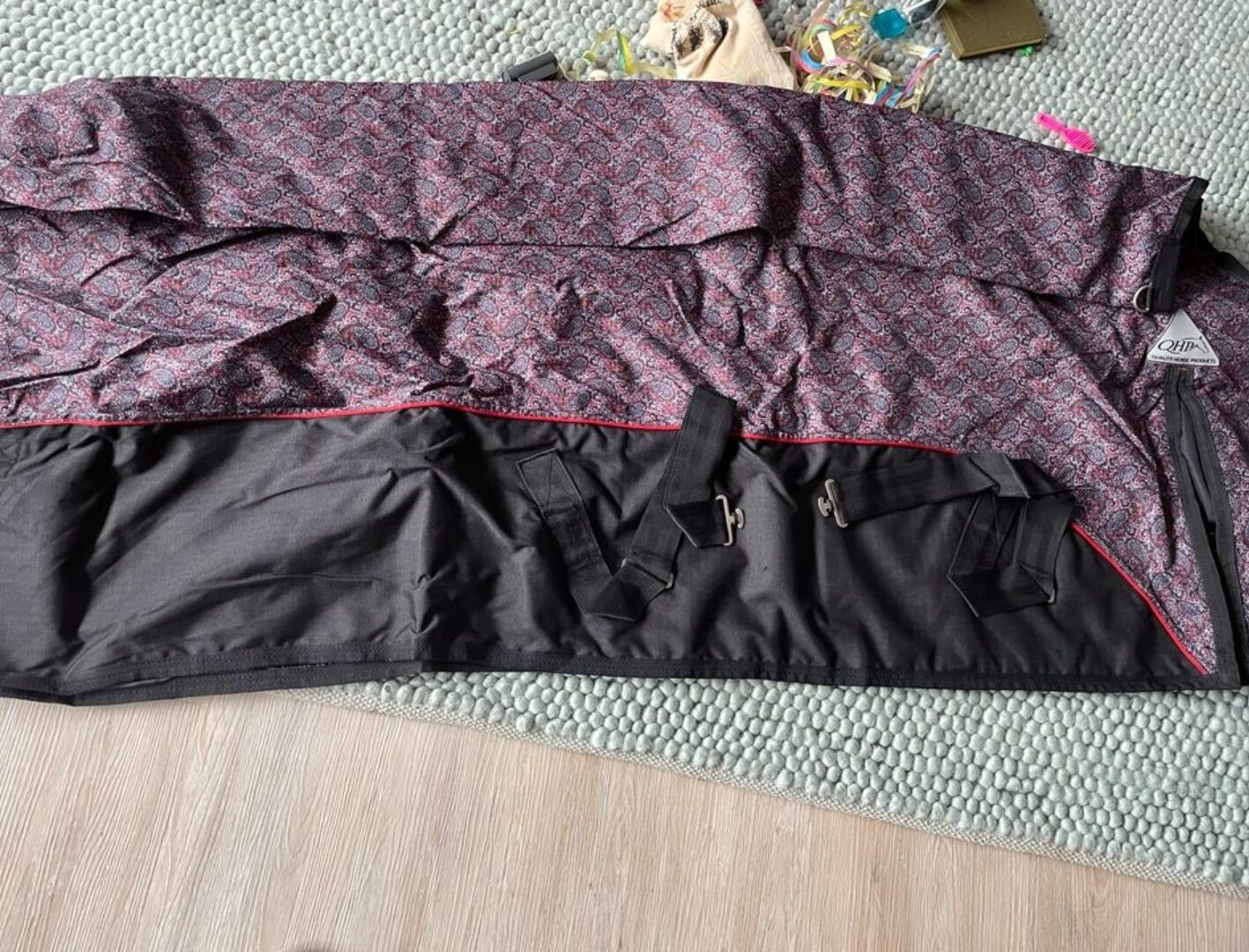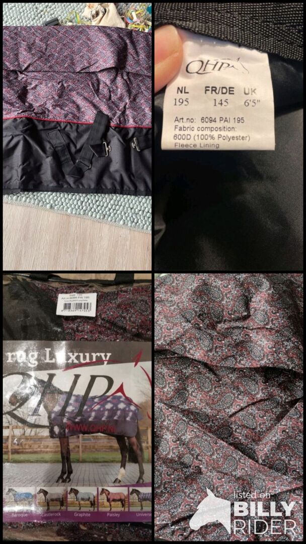 QHP Turnout Deken - 145 cm - Paisley - rood/zwart - Bieden een nieuwe en ongebruikte turnoutdeken / regendeken van QHP incl. opbergtas.