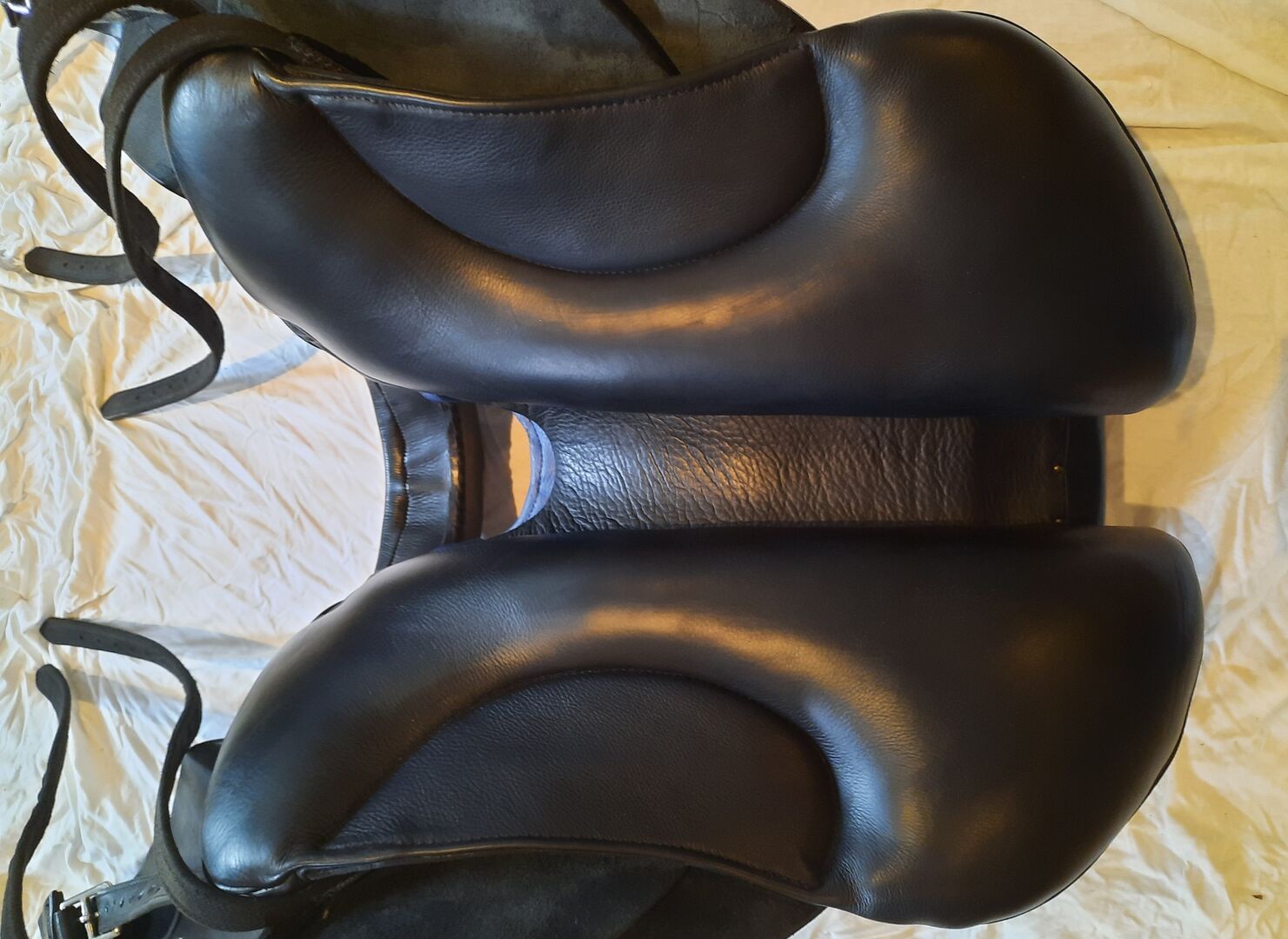 Quantum short & light van Deuber S3 - Ik verkoop mijn zadel van Deuber und Partner / Quantum short & light S3 in zwart met een blauw zadel - een echte blikvanger. De zadelmaat S3 is ongeveer 46 cm. Het zadel is 5 jaar oud en in perfecte staat omdat het weinig gebruikt is. Met de originele ruwhuiden stijgbeugels van Deuber und Partner. Er is een zadelcertificaat beschikbaar en er zit nog 1 jaar garantie op de zadelboom. Het zadel is flexibel instelbaar en maakt een goede drukverdeling mogelijk. De slokdarmplaat is traploos verstelbaar. De grote panelen verdelen het ruitergewicht optimaal over de paardenrug. Hier zijn de specificaties van de fabrikant: