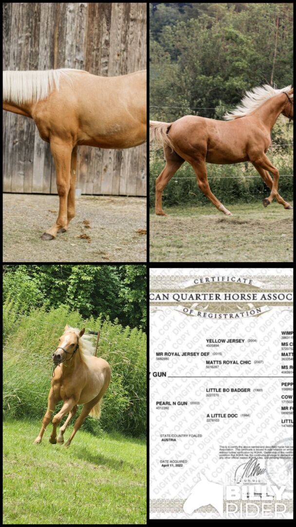 Moeder: Pearl N Gun Nakomeling van Peppy San Badger (merrie werd geïmporteerd uit USA)
