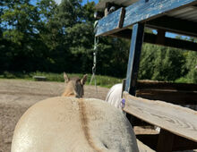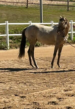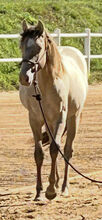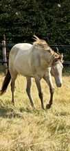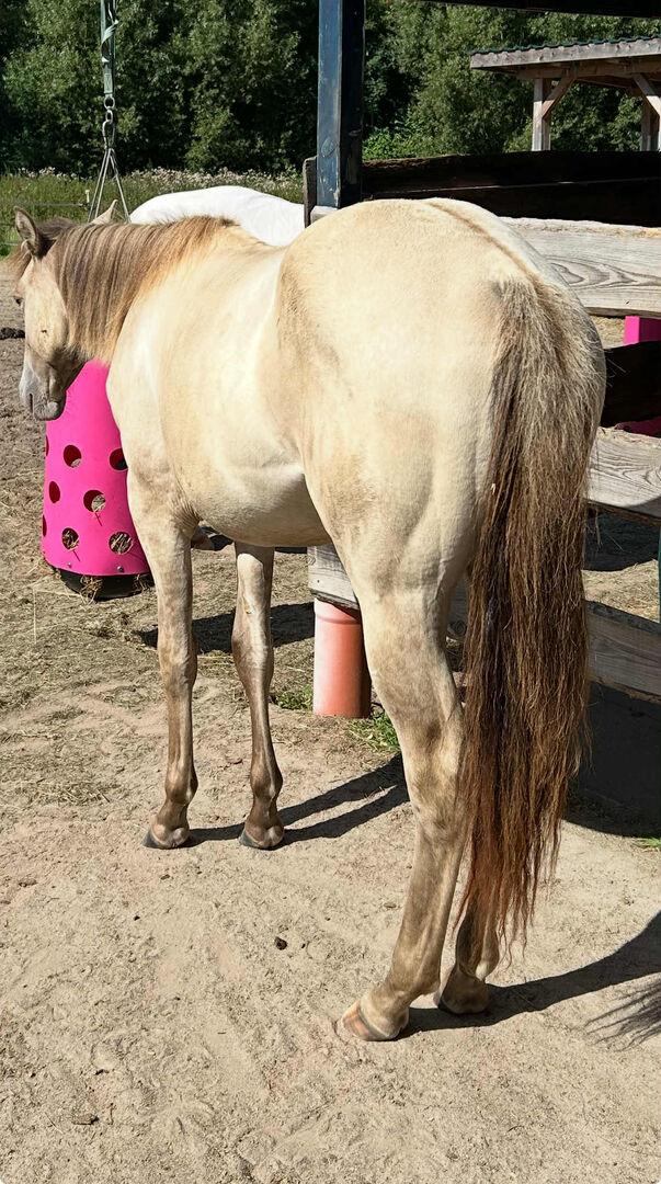 Quarter Horse merrie met speciale kleur en geweldig karakter - Plaats: 23714 Malente Cheyennes Marie Vudu - een prachtige Quarter Horse merrie, geboren op 17 april 2024. Ze draagt de ongewone en zeldzame kleur Classic Dun Champagne en is homozygoot zwart volgens de kleurentest - een spannende eigenschap die haar ook interessant maakt voor de fokkerij. Haar verwachte uiteindelijke hoogte is ongeveer 151 cm. Ze is correct gebouwd, goed ontwikkeld en al gespierd voor haar leeftijd. Ze heeft een kleine algemene gezondheidscontrole gehad in 2024 - haar gezondheid is normaal, ze wordt regelmatig ontwormd en gevaccineerd en is braaf en ongecompliceerd bij de dierenarts en hoefsmid. Vudu groeit op in een voor haar soort geschikte omgeving, is gewend om in open stallen en boxen gehouden te worden en leeft momenteel met drie andere merries in een harmonieuze groep. Ze socialiseert goed en is vrij laag in rang. Ze is erg mensgericht, vriendelijk en ruimdenkend. Ze benadert nieuwe situaties met nieuwsgierigheid en interesse, is goed opgevoed op dagelijkse basis, is goed met een halster en heeft een betrouwbare beheersing van de veulenbasisprincipes. Ze heeft een positieve uitstraling, is leergierig en attent - de beste voorwaarden voor een solide verdere opleiding. Dankzij haar goede allround afstamming is ze ideaal als toekomstig rijpaard voor recreatie of wedstrijden. Vudu combineert uitstraling, innerlijk en exterieur - waardoor ze een veelbelovend jong paard is met een goede basis voor de toekomst.