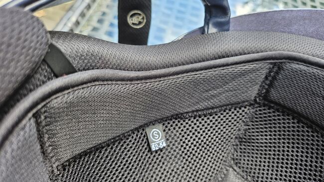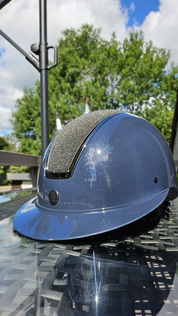 RB Rijhelm Omega Glamorous Glossy 52-54 - Zelden gebruikte RB rijhelm te koop, maat 52-54, blauw lak met glitters.