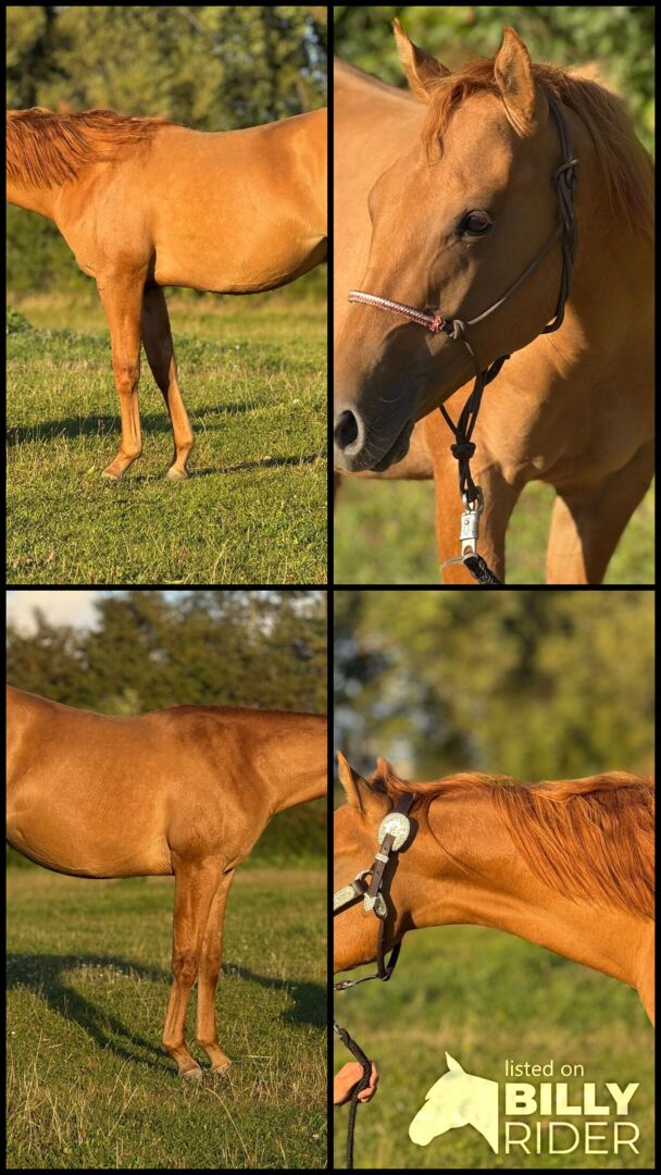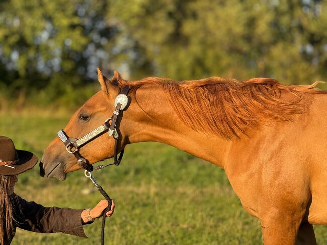 Red Smart Gun - Quarter Horse hengst met perspectief - Plaats: 18107 Rostock Red Smart Gun - een mooie Quarter Horse hengst, geboren op 30.04.2024, in de expressieve kleur Red Dun. Hij zal een geschatte stokmaat van ongeveer 152 cm bereiken en maakt nu al indruk met zijn compacte, correct gebouwde lichaamsbouw en zijn veelbelovende verhoudingen. Zijn elegante verschijning en rustige, gelijkmatige karakter maken hem tot een echt talent voor de toekomst. Red zal opgroeien in een gemengde kudde met veel beweging en sociaal contact. Hij mag in alle rust opgroeien onder de beste omstandigheden - gezond, ontwormd volgens leeftijd en genetisch foutloos (6-panel n/n). Hij is extreem mensgericht, ruimdenkend, geïnteresseerd en zeer leergierig. Red Smart Gun is rustig, ongecompliceerd, braaf en werkt al heel goed mee. Hij beheerst het veulen-ABC, is halstertrainer en weet hoe hij op een trailer moet rijden. Ook in beweging weet hij te imponeren: zijn energieke, grondovertrekkende gangen beloven net zoveel als zijn topafstamming als reining en cutting. Deze genetische basis in combinatie met zijn karakter maakt hem een geniale combinatie voor sport, show of veeleisende vrijetijdsbesteding. Met zijn hersenen, cowsense en stijl heeft hij alles wat hij nodig heeft voor een succesvolle toekomst. Hij is een kleinzoon van Colonels Smoking Gun en Lil Dry Peppy. Red Smart Gun wordt rechtstreeks door de fokker verkocht - een veelbelovend jong paard met het beste potentieel voor reining, ranchrijden of allround. Een echte ruwe diamant voor mensen die waarde hechten aan kwaliteit, karakter en perspectief.