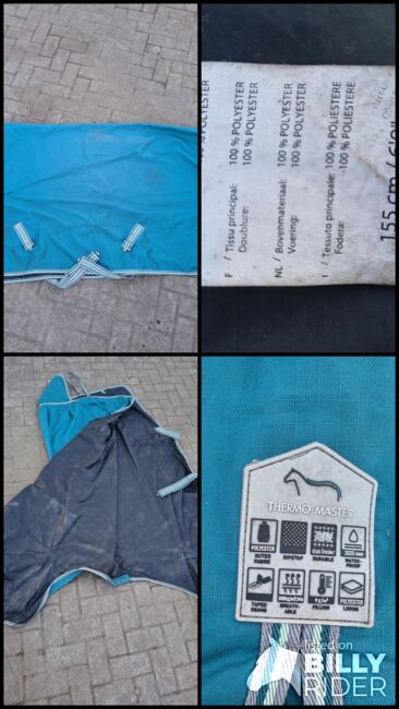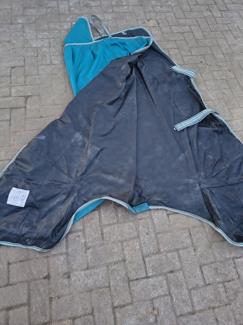Regendeken 0g - Ik verkoop deze regendeken van Thermo Master. 0g vulling, maat 155 cm. De deken is weinig gebruikt en nog steeds waterdicht. Ik heb de deken schoongemaakt, maar hij is niet gewassen dus er zitten nog een paar vlekken op.