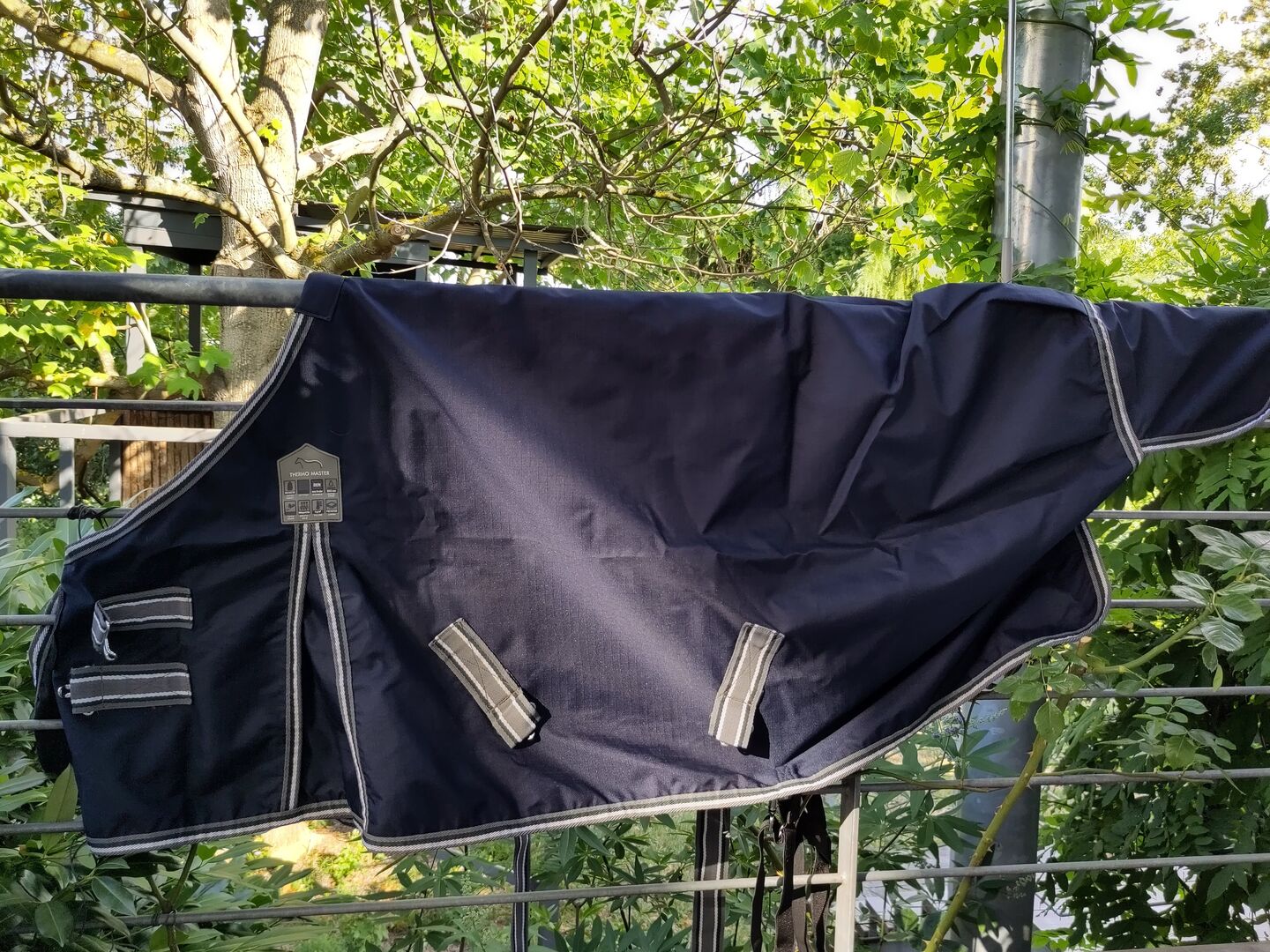 ARTIKEL BESCHRIJVING van de fabrikant: Klassieke, waterdichte en HH h ZZ hebben zvademende regendeken van 600 denier ripstop materiaal (waterkolom 3.000 mm, ademend vermogen 3.000 g/m2/24u). Met kruisje voor optimale bewegingsvrijheid, dubbele T-haak borstsluiting met extra KV, verstelbare kruissingels en staartflap. Incl. voorziening voor het bevestigen van beenkoorden en in lengte verstelbare crupper. Met schoftpadding om druk en schuren te voorkomen. Gladde, bontvriendelijke voering.100% polyester.