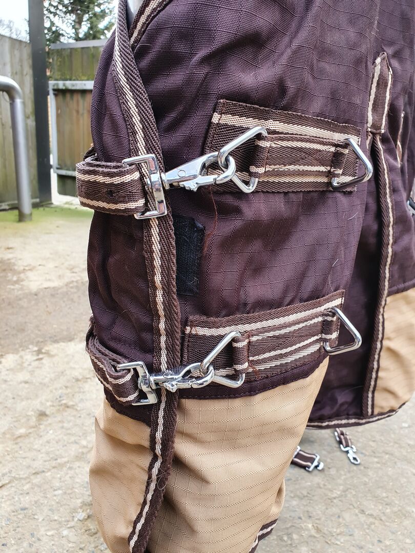 Er zitten 2 buikriemen en 2 beenriemen aan de deken.