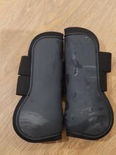 Regenlaarzen (voorkant) voor pony in marineblauw - te koop slobkousen (voorkant) van het merk Horze in maat pony. Ze zijn zelden gebruikt, maar hebben een paar gebruikssporen.