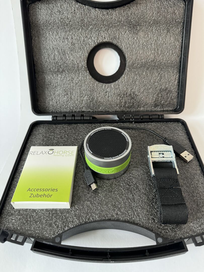 RELAXO HORSE Ontspanningssysteem - Relax Horse +++ Bekend van "Die Höhle der Löwen" +++ Diepe ontspanning voor paarden De innovatieve Relaxo Duplex geluidsmodule voor paarden werd in meer dan 4,5 jaar onderzoek en ontwikkeling speciaal ontwikkeld voor de hoogfrequente diepe ontspanning van paarden en is geschikt voor elk paard dat uit balans is, ongeacht leeftijd en ras. Relax for Horses helpt met succes om deze stressfactoren te vermijden, of het nu in de stal, op stalpaden of in een niet-dierlijke omgeving is, omdat Relax Horse onafhankelijk van een stopcontact werkt dankzij de werking op batterijen. De individuele volumes van de Relax Horse geluidswerelden kunnen door de gebruiker traploos worden aangepast aan de betreffende toepassingssituatie en het omgevingsvolume van het dier. De Relax Horse geluidsmodule werkt met zijn speciale geluidsversies die zijn afgestemd op het gevoelige gehoor van paarden en het paard diep laten ontspannen. De eigenaar kan kiezen of de Relax Horse geluidsmodule met of zonder extra ontspanningsmuziek moet werken; een simpele schakelaar is voldoende om RelaxoPet stil te laten werken voor het menselijk oor. Relax Horse kan angst en stress bij paarden verminderen Angst is in eerste instantie een natuurlijke en nuttige reactie van het lichaam. Het beschermt het paard tegen schijnbaar levensbedreigende situaties. In eerste instantie triggert angst een vluchtinstinct of iets dergelijks bij het paard. Dit uit zich in paniekerig wegrennen, andere dieren worden extreem schrikachtig of zelfs agressief. RelaxoPet kan deze stressfactoren verminderen en werkt via het gehoor, de vacht en de hoef van het dier dankzij de hoogfrequente geluidsgolven. Toepassingsgebieden voor paarden Het spenen van veulens Trainingsstress Agressiviteit Algemene angst Algemene kalmering Verandering van eigenaar Stalrust Destructief gedrag Wangedrag Vuurwerk Onweer Paniek Hyperactiviteit Gebrek aan sociaal gedrag Hoefwerk Veterinaire bezoeken Rangordestoornissen Transport Scheidingsangst Omgevingsveranderingen Obsessieve-compulsieve stoornissen en nog veel meer Een breed scala aan mogelijke toepassingen Relax Horse voor paarden kan in veel situaties worden gebruikt, zowel op stal als buiten. Dankzij het extra ondersteuningssysteem en de robuuste transportversie kan RelaxoHorse elk transport in de transporttrailer begeleiden. Stresssituaties zoals veranderingen in de omgeving of wedstrijdstress kunnen nu eindelijk tot het verleden behoren. Het bijgevoegde toepassingsboekje legt het gebruik van RelaxoPet voor paarden uit in gedetailleerde, gemakkelijk te begrijpen stappen. De volledige gebruiksaanwijzing vind je op deze website onder het kopje Gebruiksaanwijzing. De belangrijkste feiten op een rij Ontspanning door hoogfrequente geluidsgolven Ideaal voor stalrust, vuurwerk, agressie, hoefsmederij en transport Volume traploos instelbaar Hoorbare en onhoorbare geluiden kunnen worden afgespeeld Inclusief transportkoffer met bevestigingsriem Lithium-ion batterij voor opladen - geen vervelende kabel. Bereik tot 5 meter