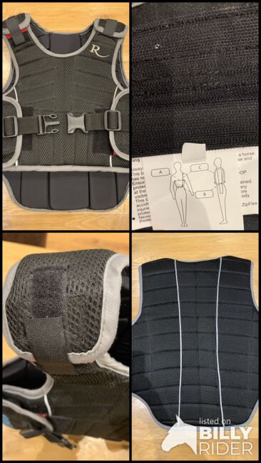 CHILDREN’S RIDING BODY PROTECTOR Only used a handfull of times, like new. Size: It is a Children's size XL See Rhinegold's website for measurements or check the photo with the measurements as well please. https://www.rhinegoldequestrian.co.uk/product/childrens-riding-body-protector/