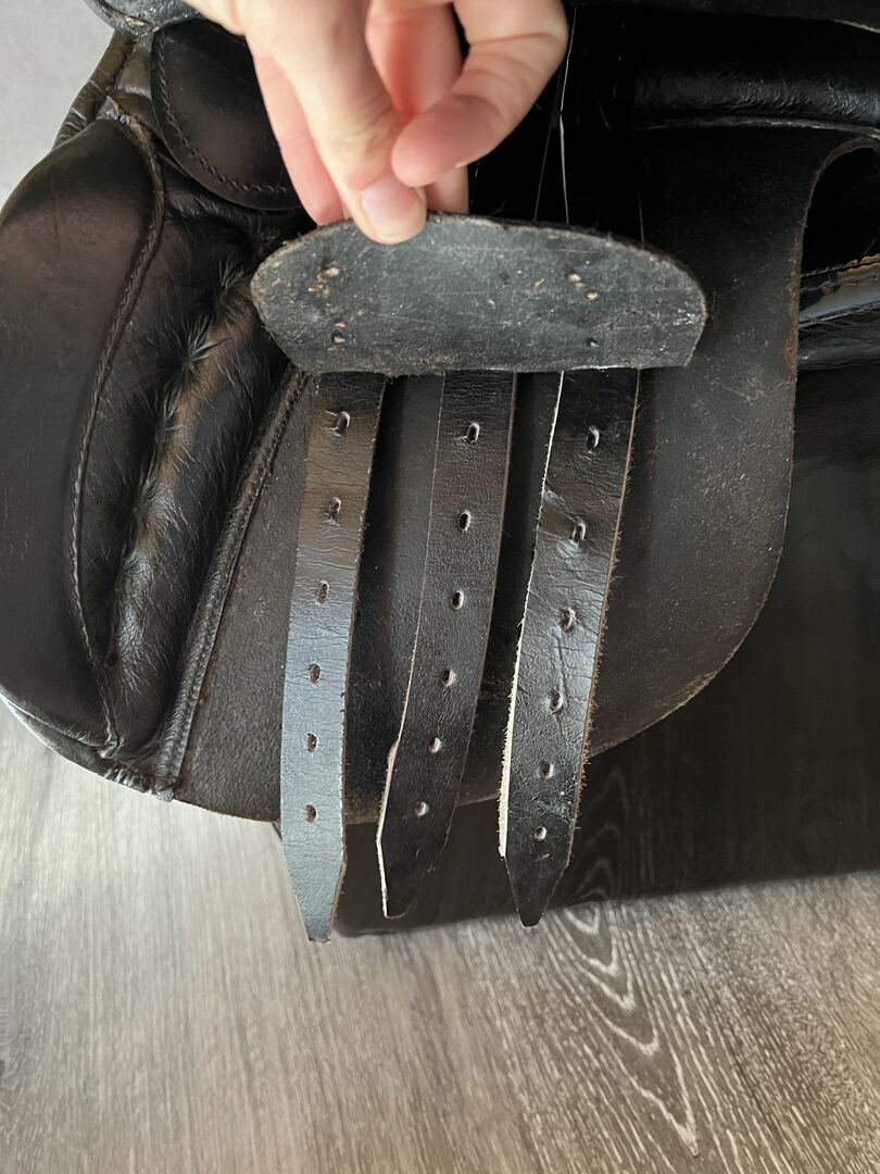 Ribbelzadel, reiszadel, traditioneel zadel 16,5". - Ik verkoop een gebruikt ribbelzadel/reiszadel dat nog in zeer goede staat is. Het zadel is door ons zeer zelden gebruikt omdat het niet goed bij het paard paste, dus het is welkom om verder te gaan. Het was bedoeld voor een Noriker, de zwaai was goed, maar de kamer was te smal. Het zadel is meer geschikt voor smalle paarden met een beetje ronding in de rug. Het zadel is erg comfortabel door de zachte zit. Het zou echter eventueel opgevuld moeten worden omdat de panelen vrij hard zijn. Het is moeilijk om de breedte van de slokdarm te meten omdat het zadel iets anders is gesneden in de slokdarm dan normaal, ik heb geprobeerd de maten te nemen, dus kijk alsjeblieft naar de foto's.
