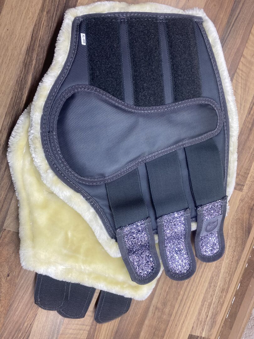 RidersChoice- Ridersdeal Softgaiters 1680D Glitter XL donkergrijs - Set van 2 zachte beenkappen 1680D met glittermateriaal In maat XL, kleur donkergrijs NP 29,99 Nieuw - was alleen op het paard voor het passen 25€