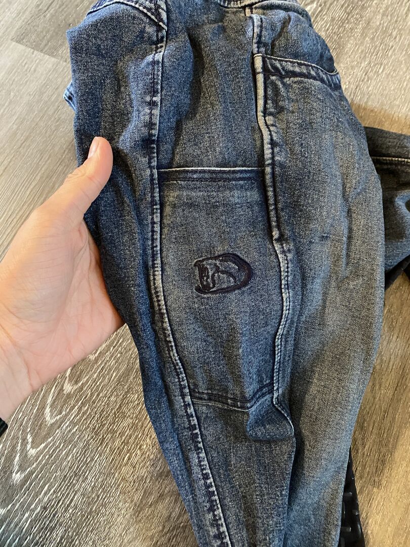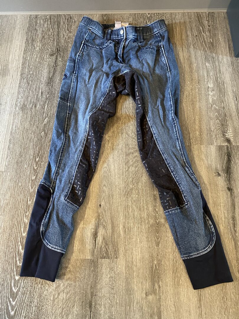 RidersDeal RidersChoice Rijbroek Jeans 36 - Ik verkoop een paar RidersDeal/ RidersChoice jeans rijbroeken in perfecte staat. Ik heb ze maar een paar keer gedragen, maar ik heb te veel rijbroeken. De greeplijst is nog in topconditie en heeft geen afgeschuurde plekken. Dus ze zijn in perfecte staat! Ze hebben een zak voor mobiele telefoons op het been, waar ook grote mobiele telefoons in passen. Ze hebben ook een mooie elastische tailleband.