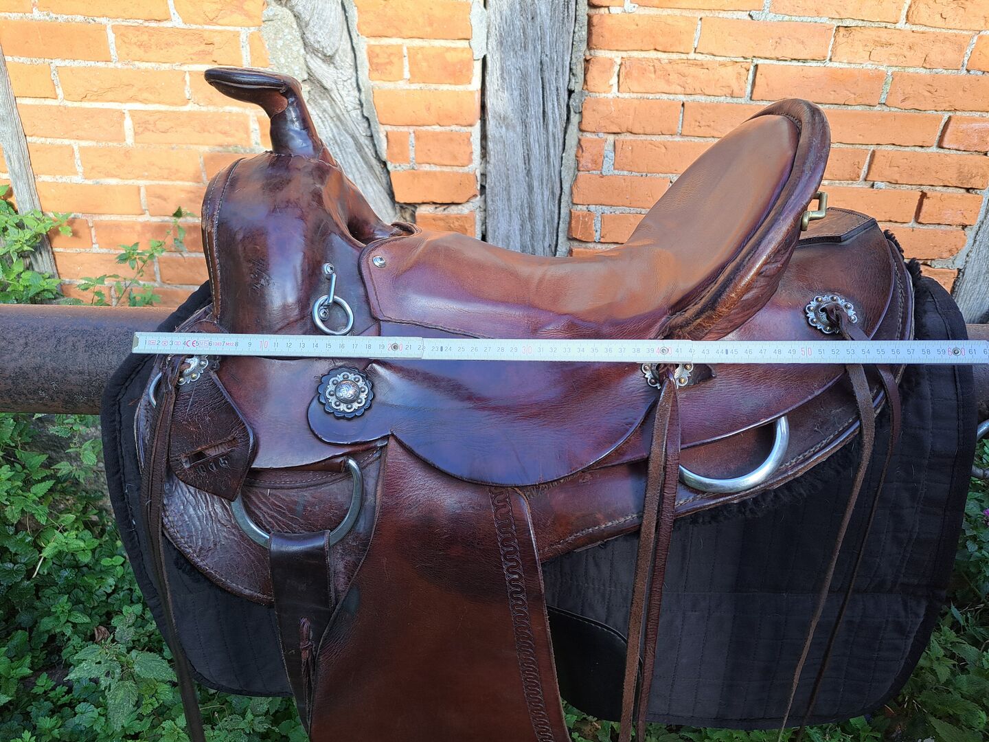 Rieser western zadel kort, ronde rok - Hallo lieve paardenmensen, Ik wil graag van de gelegenheid gebruik maken om mijn goed gebruikte westernzadel door te geven aan een nieuw team. Het was oorspronkelijk een Deuber westernzadel, dat door Rieser is opgeknapt en een nieuwe houten zadelboom heeft gekregen. Het heeft een paar vouwen omdat het leer niet perfect op de nieuwe boom paste, maar dit heeft geen invloed op de functie en maakt het een uniek exemplaar.