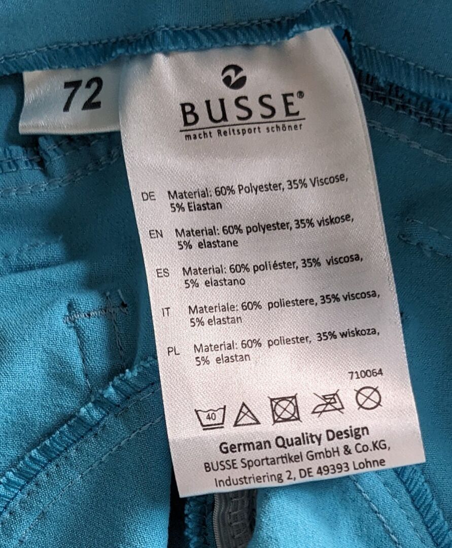 Rijbroek Busse turquoise Grip bies nieuw, maat 72 - - Nieuwe, ongedragen rijbroek met griprand in maat 72. - afmetingen: beenlengte > vanaf taille 97cm, taille > ca. 35cm - meer details s. foto's - uit een huisdiervrij niet-rokers huishouden - verzending mogelijk mits betaling van kosten