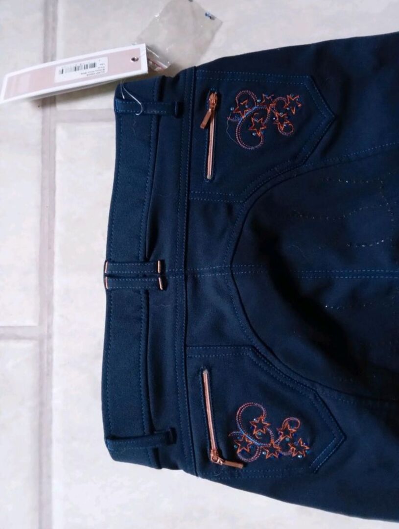 Rijbroek nieuw imperial xxs, xs 164 - Deze rijbroek maakt indruk met zijn stijlvolle ontwerp en vele functionele eigenschappen. Het siliconen, volle zitvlak zorgt voor een stevige grip in het zadel, terwijl de elastische beenboorden de dij omsluiten zonder de bewegingsvrijheid te beperken. Dankzij het materiaal van polyamide en elastaan wordt ook het comfort niet verwaarloosd. De materialen geven de rijbroek sneldrogende eigenschappen en maken hem bijzonder elastisch. Daardoor past de broek zich perfect aan de contouren van het lichaam aan. De stijl van de rijbroek is klassiek en wordt gekruid met glinsterende accenten van strassteentjes en folieprint op de voor- en achterzakken.