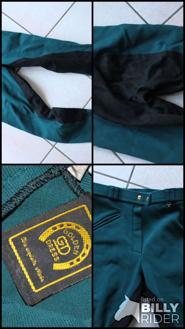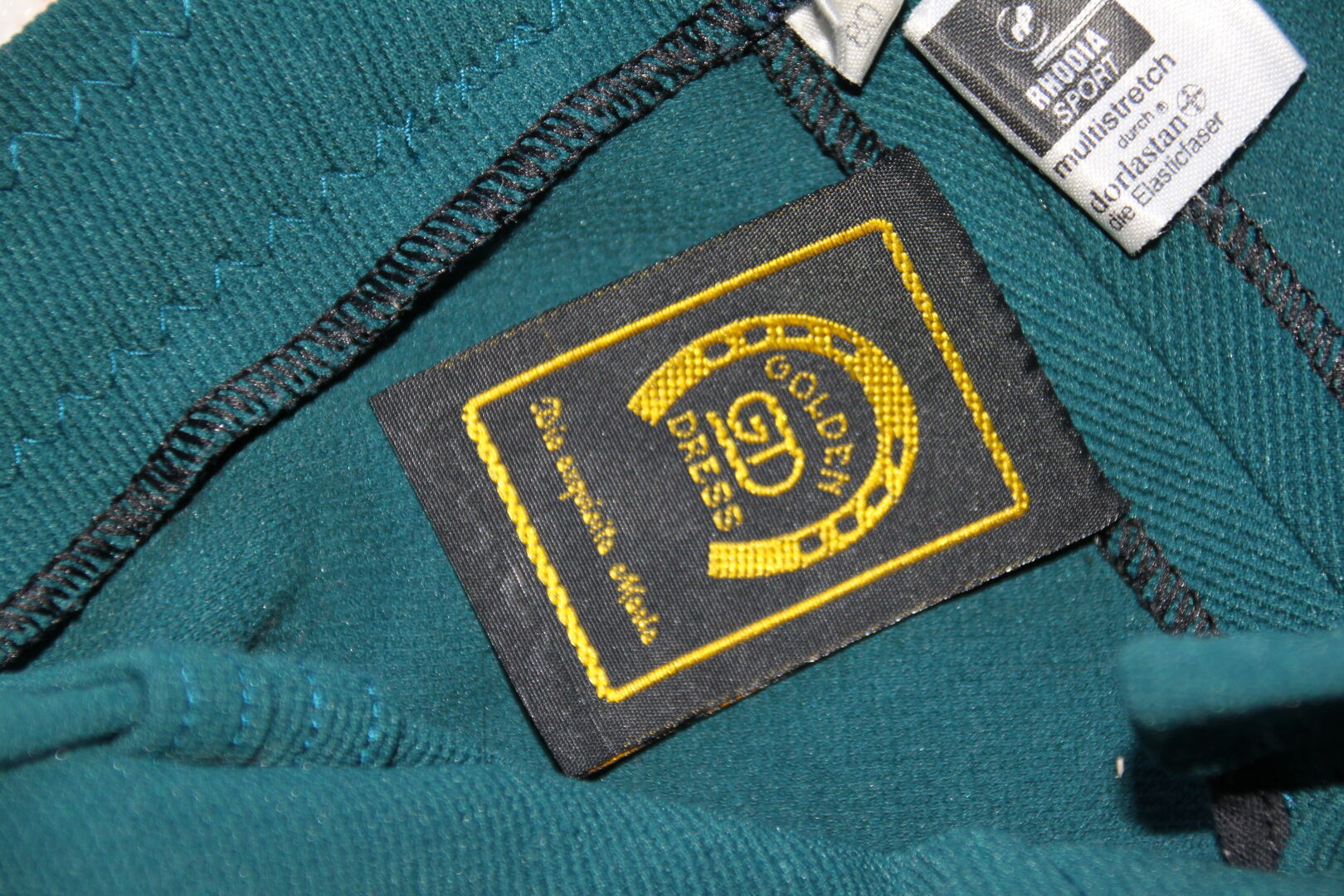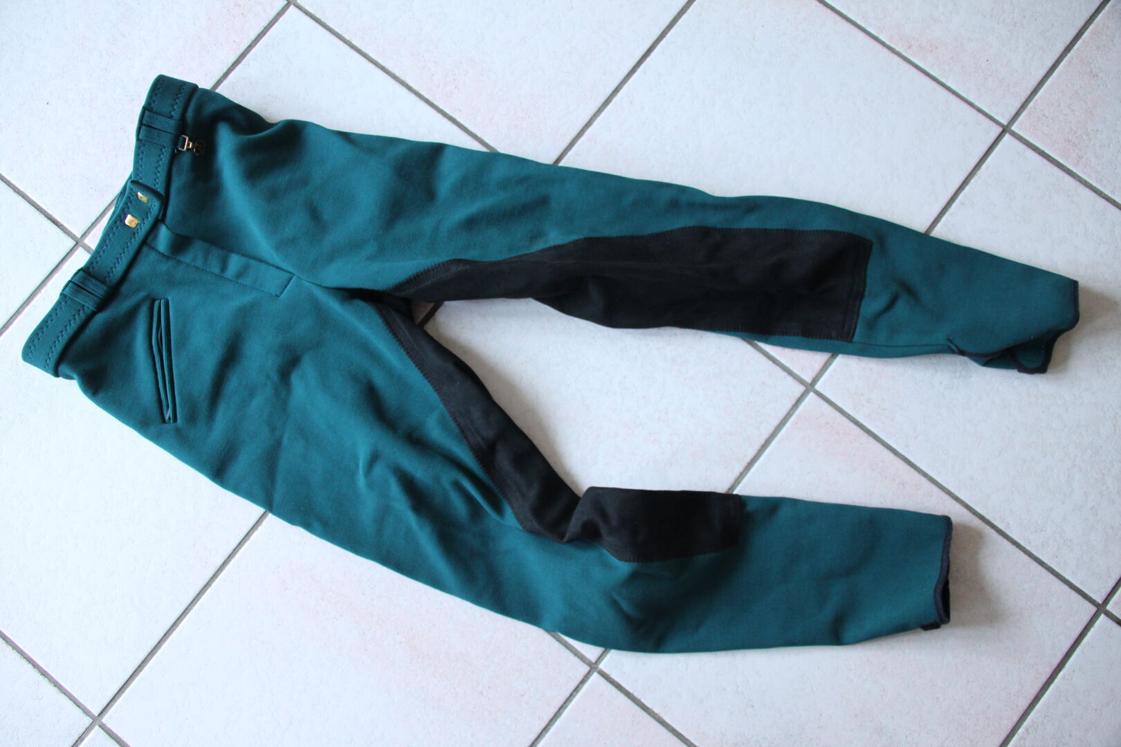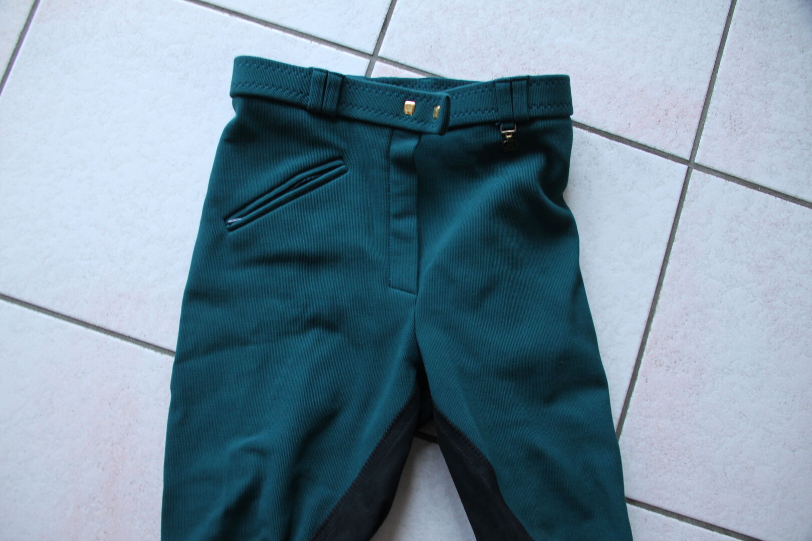 Rijbroek softshell maat 80 (40 lang) - Warme, winddichte, comfortabele rijbroek, niet veel gedragen omdat hij me iets te groot is. De kleur is Fransgroen, de bies is donkerblauw.