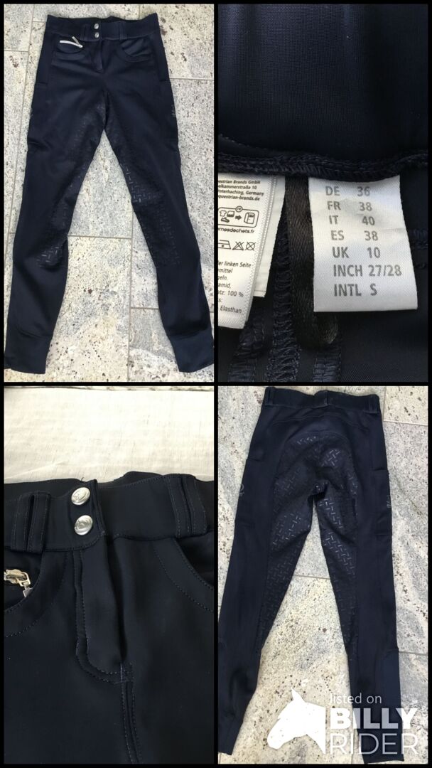 Rijbroek van Riders Deal, maat 36 - Ik verkoop deze zeer weinig gebruikte paardrijleggings met siliconen boorden en elastische beenboorden. De broek heeft 2 zakken voor mobiele telefoon en een hoge tailleband