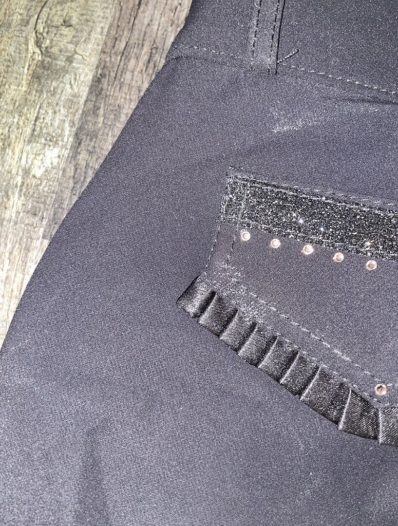 Rijbroek Zwart - Eén keer gedragen. Als nieuw. Is gewassen. Originele vervangende glittersteentjes zijn ook nog beschikbaar