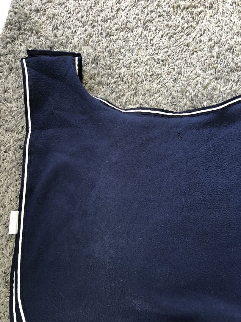 Rijdeken 90 cm blauw - Hallo, Hier te koop een geweldige, fris gewassen paardrijdeken met een lengte van 90 in blauw. Kleine laesie (zie foto) ... maar dit deel zit toch onder het zadelflapje.
