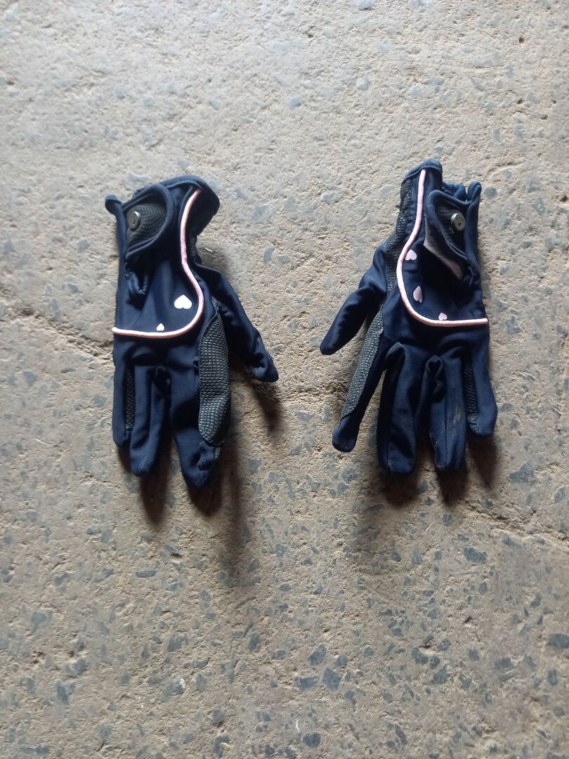 Rijhandschoenen kinderen 7-9 jaar blauw roze - Goed geconserveerde kinderrijhandschoenen in blauw roze
