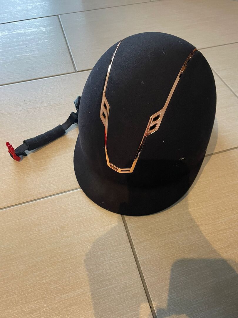 Rijhelm - fluweel en roségoud - Wij verkopen een paardrijhelm in zwart (fluweel) met roségoud van het merk Knights Bridge