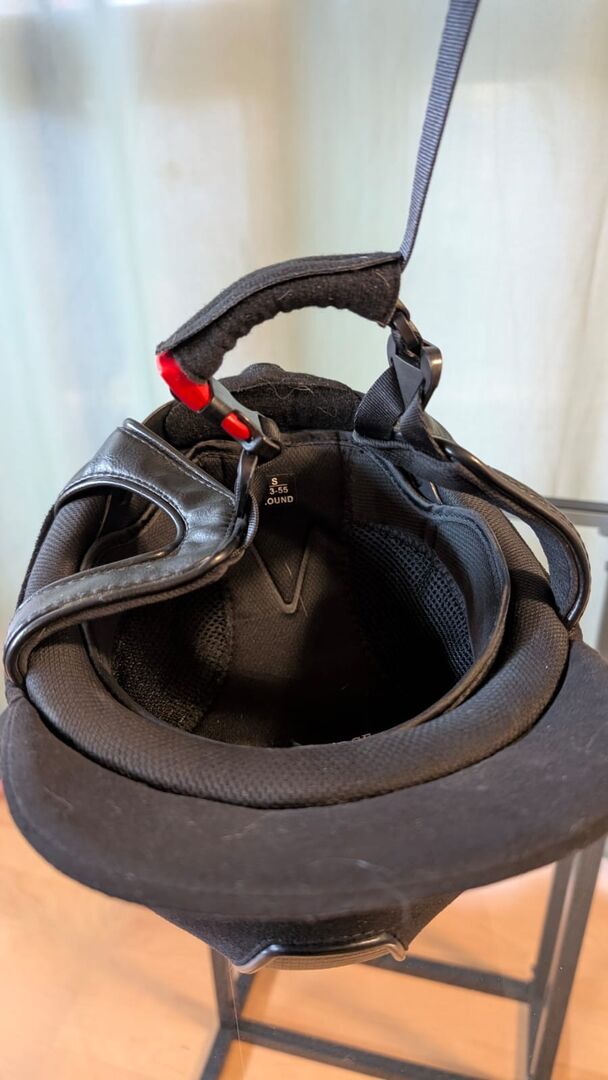 Rijhelm Knightsbridge Glory Gr S 53-55 cm - Stijlvolle gebruikte rijhelm, crashbestendig met een geïntegreerd designelement in het midden. Bovenmateriaal van hoogwaardige microvezel, gemakkelijk te wassen. Het instelwiel aan de achterkant en de twee meegeleverde voeringen (voor ovale en ronde hoofden) garanderen een perfecte pasvorm. Maximale bescherming dankzij de slagvaste ABS-buitenlaag en de schokabsorberende EPS-binnenlaag. De beklede synthetisch lederen riemen geven deze rijhelm een authentieke look. Gewatteerde kin- en nekbescherming. De ademende binnenvoering is uitneembaar en wasbaar.