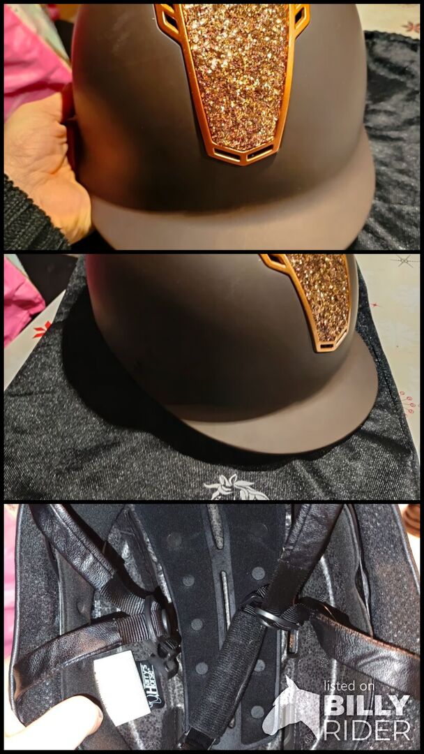 Rijhelm, paardrijcap met glitterinleg, in nieuwstaat - Veiligheidshelm van Harry Horse, maat 59-61 Wasbare binnenvoering Kleur: mat bruin met glitterinleg Absoluut chic!