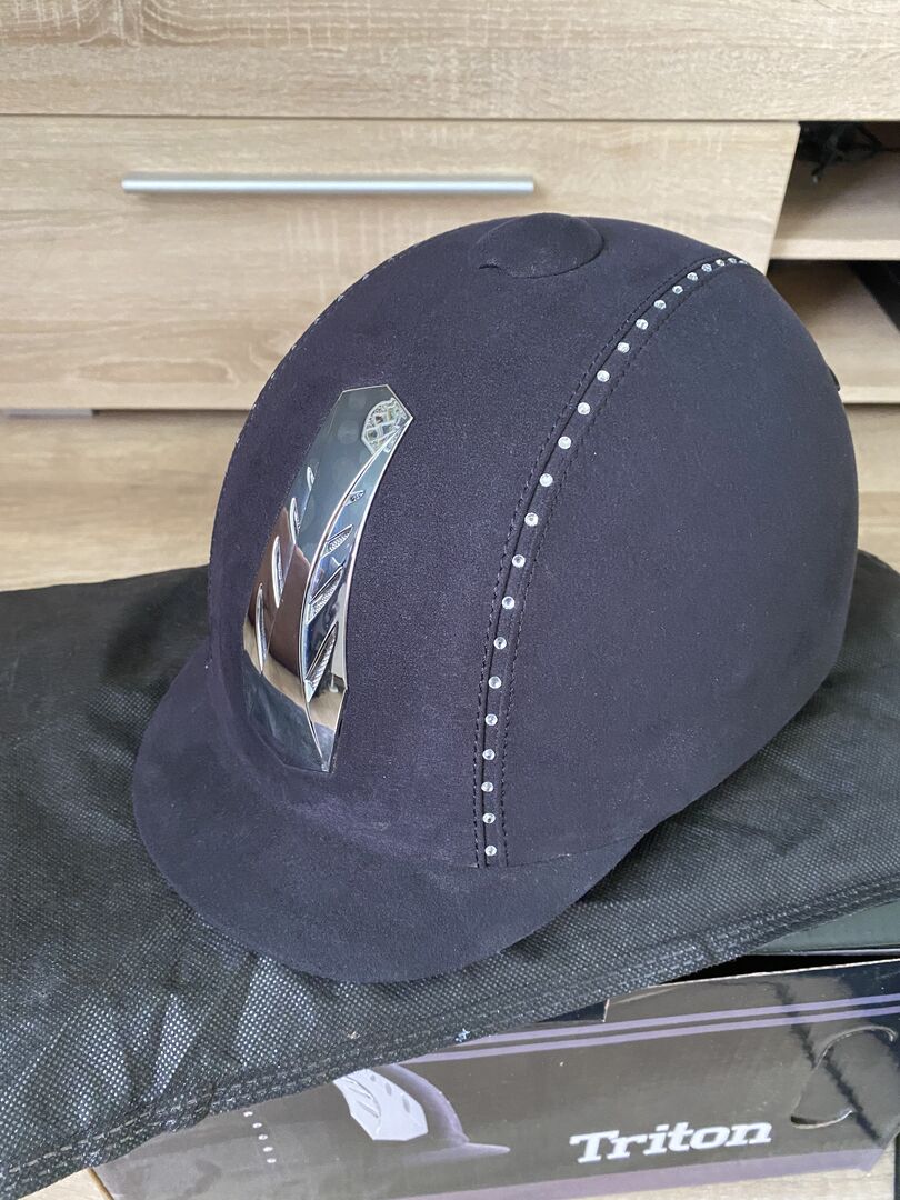 Helm (glittersteen): Maat 54-56 (verstelbaar zie foto). De helm is gedragen maar ziet er als nieuw uit, geen krassen of vlekken. De binnenvoering kan er ook uitgehaald worden. 50,00€