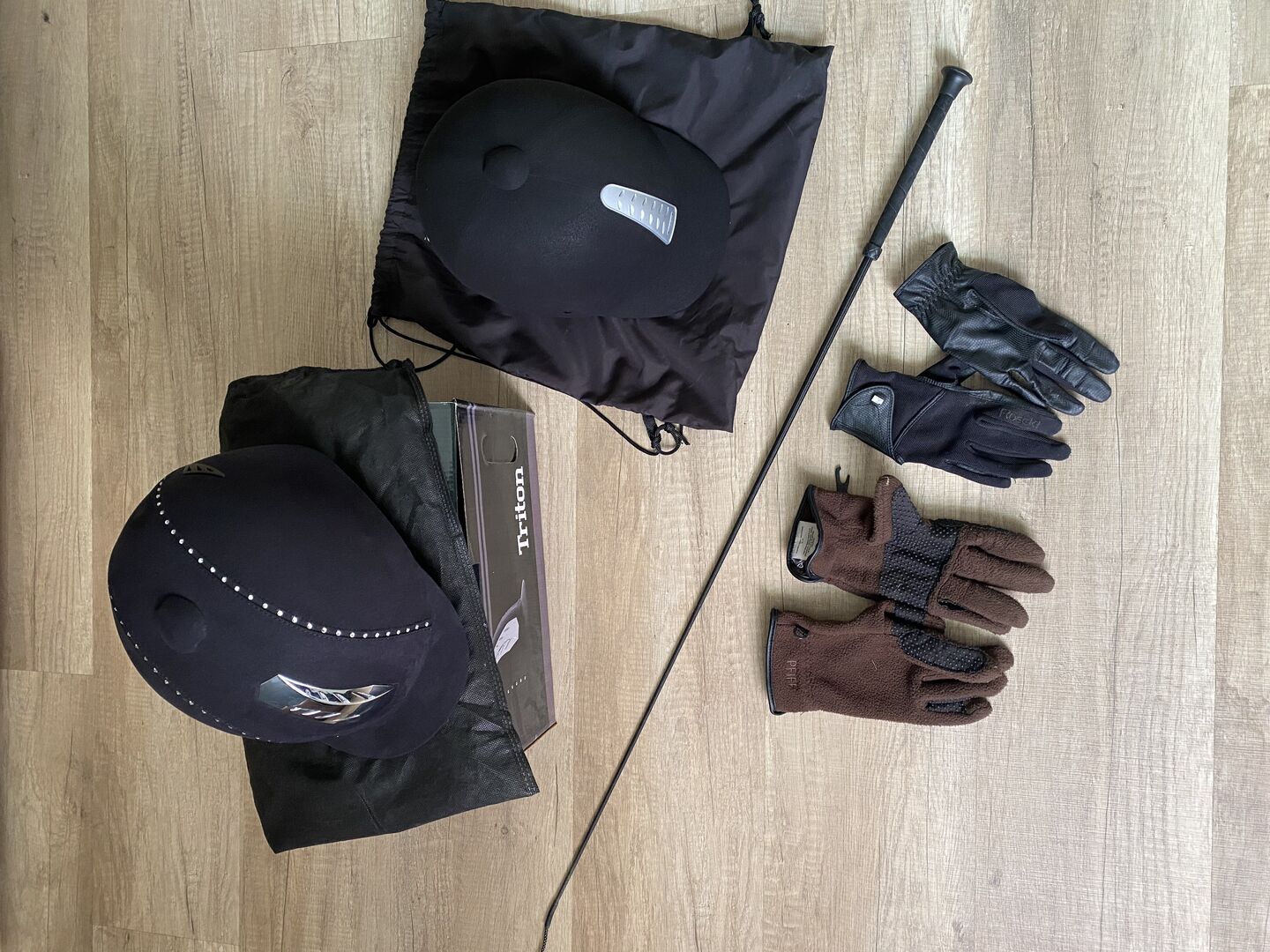 Rijhelmen, rijhelm dames - Ik verkoop twee Horze rijhelmen. Een vrij effen en een met glinsterende stenen. De rijzweep op de eerste foto is ook te koop en is gloednieuw.
