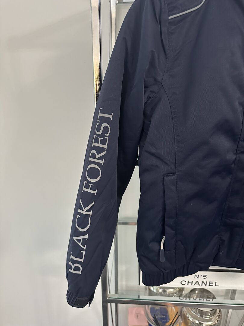 Rijjas - Te koop hier een prachtige winterrijjas van het merk Black Forest. Maat 152 Kleur donkerblauw Afneembare capuchon Warm gevoerd Binnenzak NP 79,99
