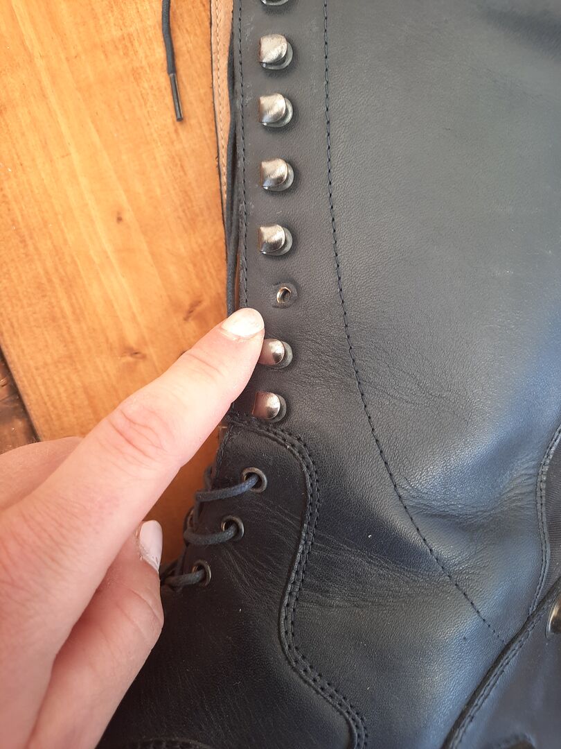Rijlaarzen - Premiere Equine Rijlaarzen maat 40 Breed. Hoogte 46 Breedte 39-41 Ze passen me niet. Twee keer getest. Eén oogje ontbreekt. Ik heb toen gewoon het koord door het gat getrokken.