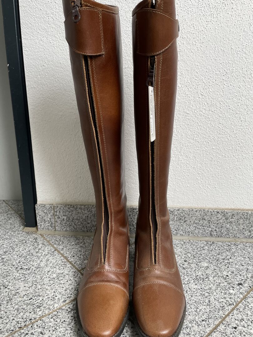 Rijlaarzen bruin - Ik verkoop de absolute droomlaarzen hier. Helaas zijn mijn kuiten te breed, dus geef ik ze met pijn in het hart door. De laarzen zijn absoluut nieuw, ze zijn alleen gedragen voor een pasbeurt. Het merk van de laarzen is HORKA (Versie: SARAH CAMEL).