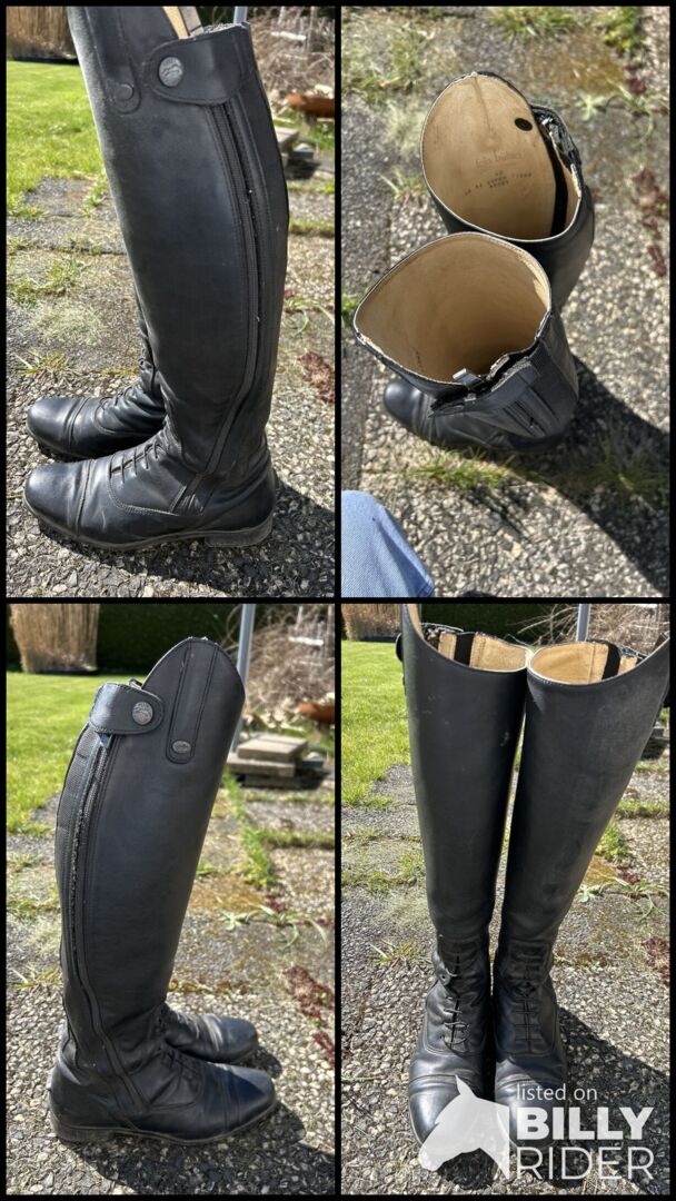 Ik bied mijn Felix Bühler rijlaarzen aan in goede staat. Ze zijn goed verzorgd en beschermd met laarzenspanners. Ze werden regelmatig ingesmeerd met lederverzorging. Er zijn natuurlijk tekenen van slijtage, maar die zijn beperkt :). Omdat ik gestopt ben met paardrijden, wil ik ze graag verkopen omdat ze te mooi zijn om in te staan. Nieuwprijs op 300€. Ik heb ze 5 jaar in mijn bezit gehad.