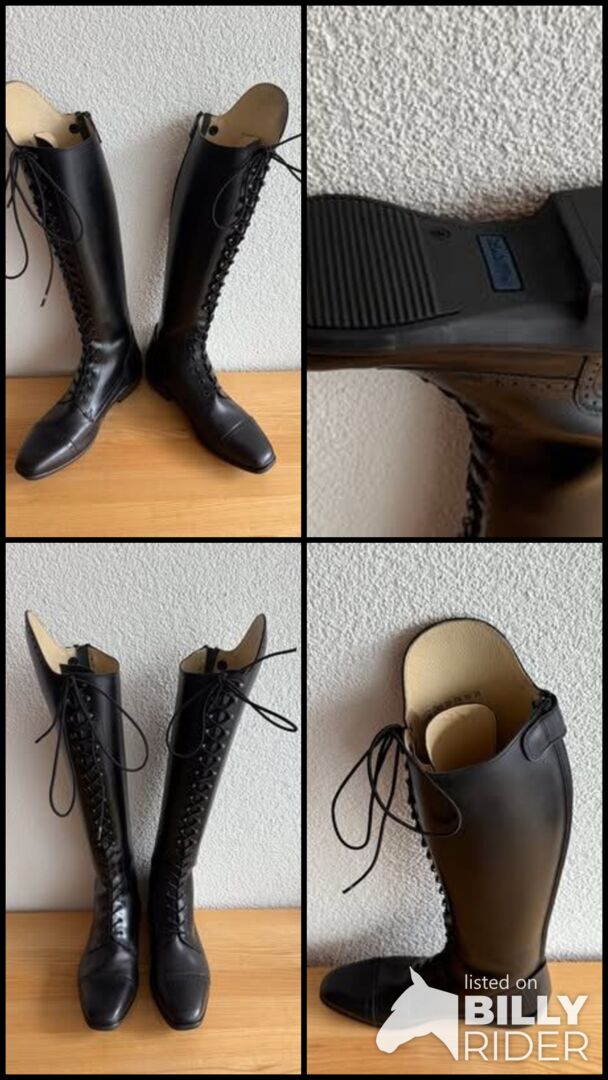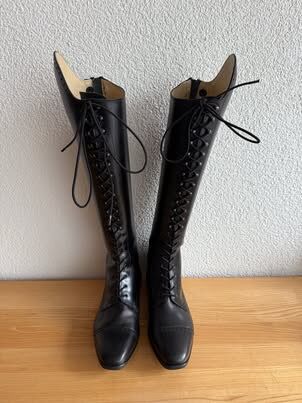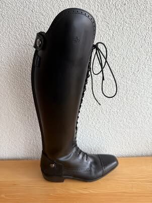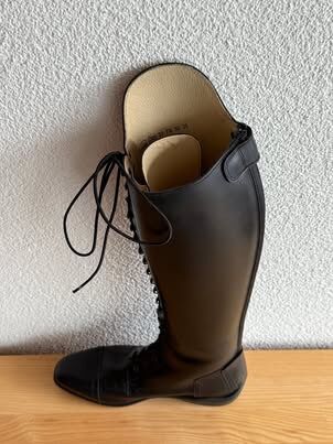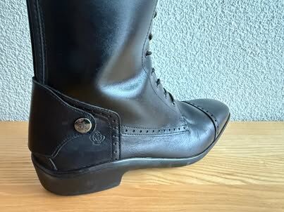 We hebben nog een paar nieuwe leren rijlaarzen van Königs in de aanbieding. De rijlaarzen zijn alleen thuis gepast en kort gedragen, helaas passen ze niet naar wens en daarom moeten we ze nu met pijn in het hart verkopen.