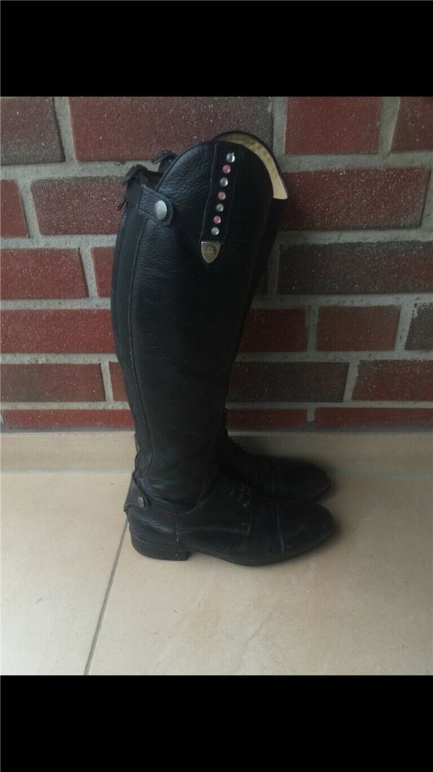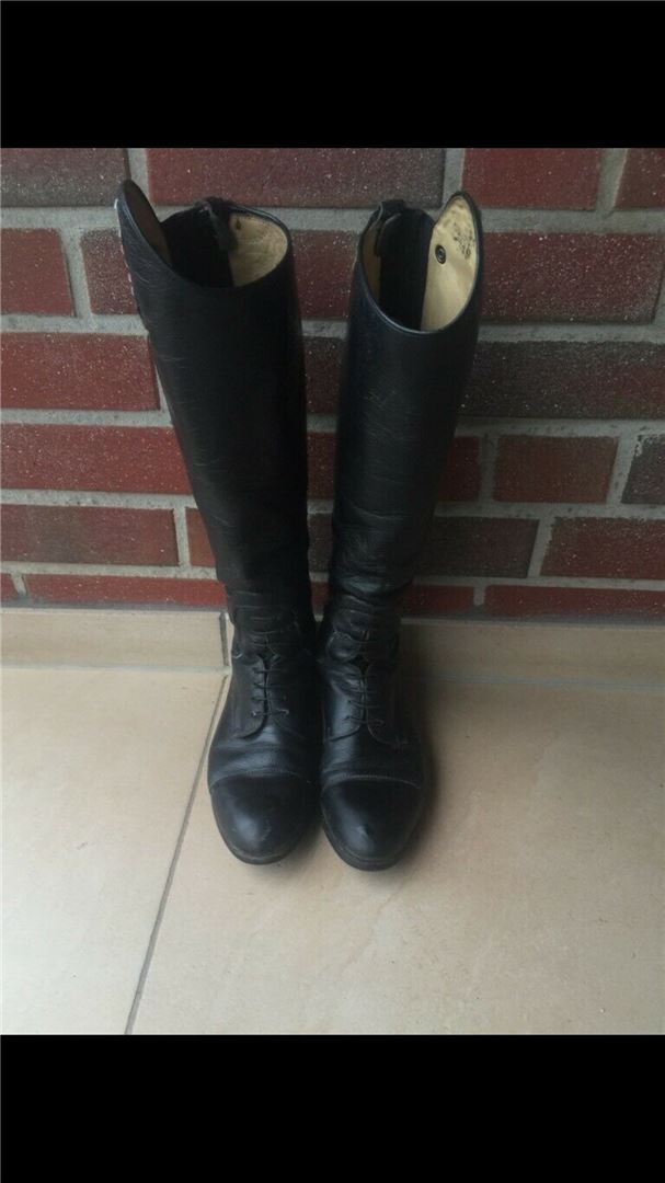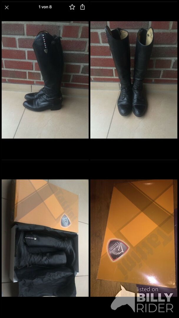 Rijlaarzen Tattini Breton - De Tattini Breton wordt door de fabrikant als volgt omschreven: een elegante lederen rijlaars uit Italië, vervaardigd van hoogwaardig, generfd kalfsleder. De YKK-ritssluiting achteraan met elastische inzetstukken aan beide zijden zorgt ervoor dat de schacht zich perfect aan uw been aanpast. Het Air Boost System zorgt voor een goede ventilatie van de schoen. De rubberen zool is schokabsorberend.Het perfecte alternatief in plaats van enkellaarsjes met chaps.De edele voetvorm en het lichte lederen materiaal onderscheiden deze rijlaars.