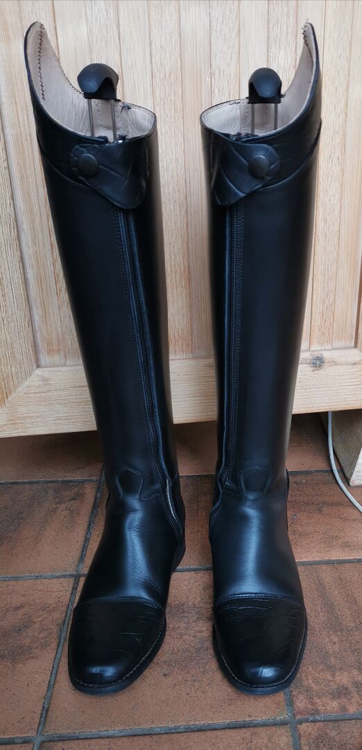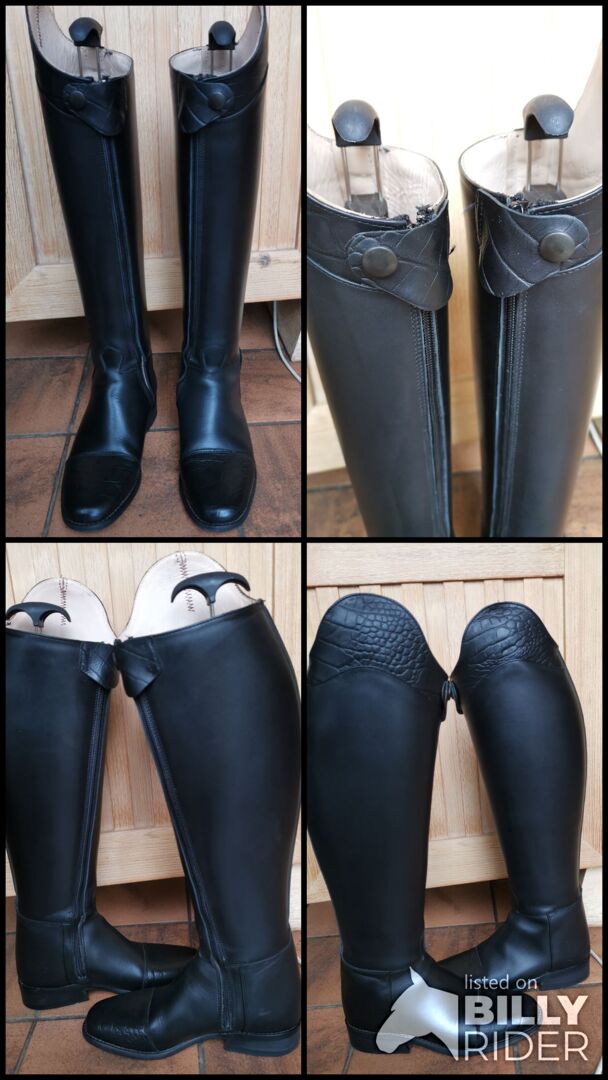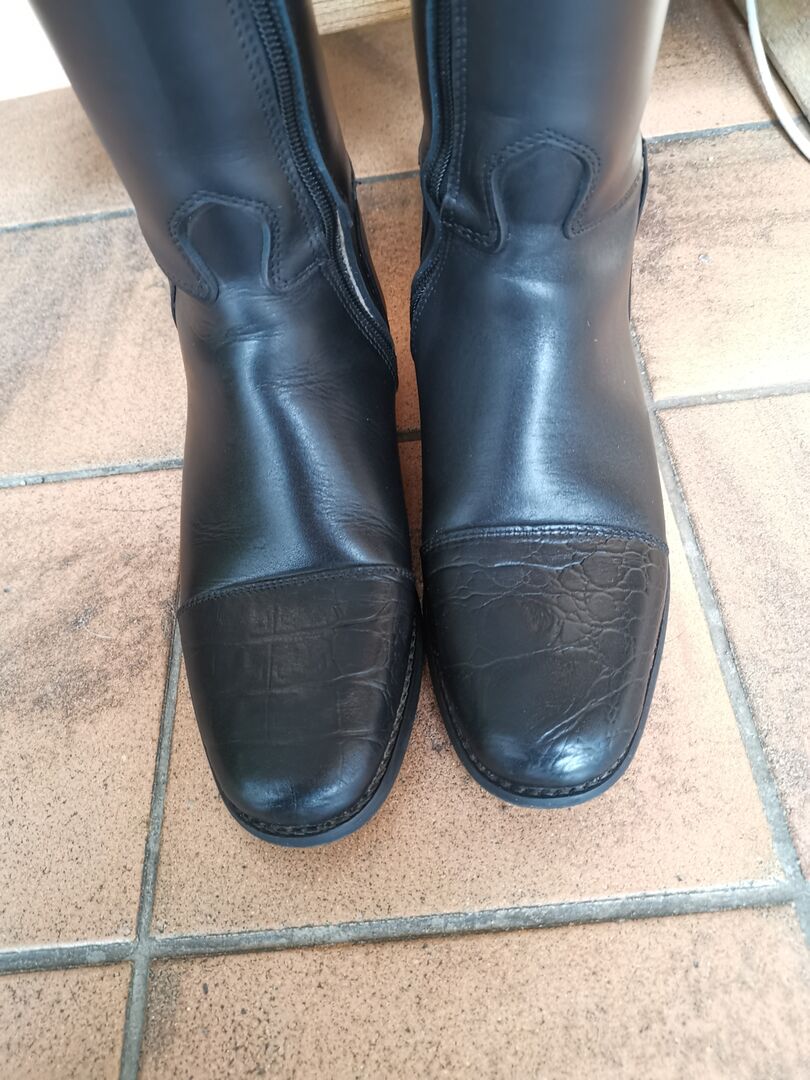 Rijlaarzen zwart maat 37 / 37,5 mooie optiek - Met pijn in het hart verkoop ik op maat gemaakte laarzen van Healthy Horse / Lipizia. Helaas passen ze me niet meer na een onderbreking van het rijden. Originele prijs was 390€.