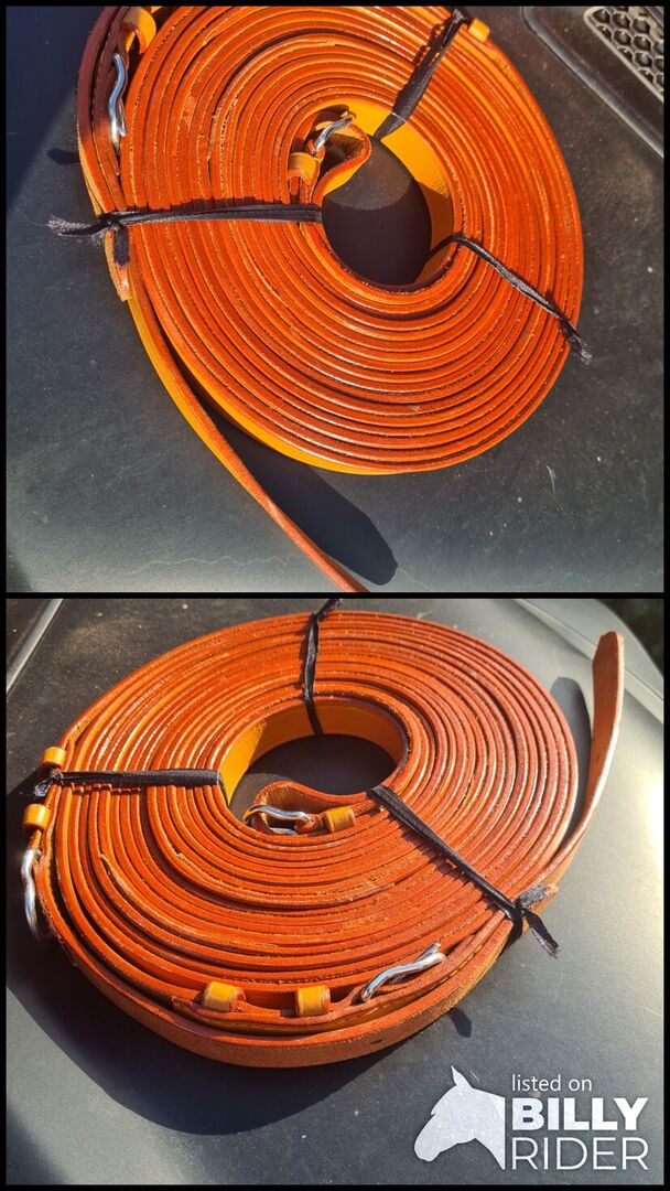 Ik bied mijn nooit gebruikte leren rijlijnen aan.