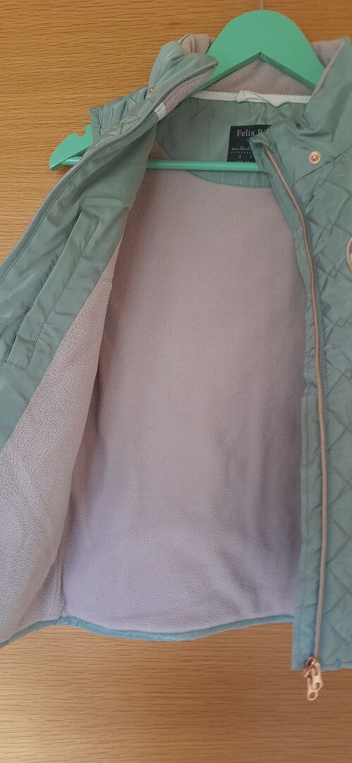 Met zachtroze voering, binnenzak, afneembare capuchon en afneembaar bont op de capuchon