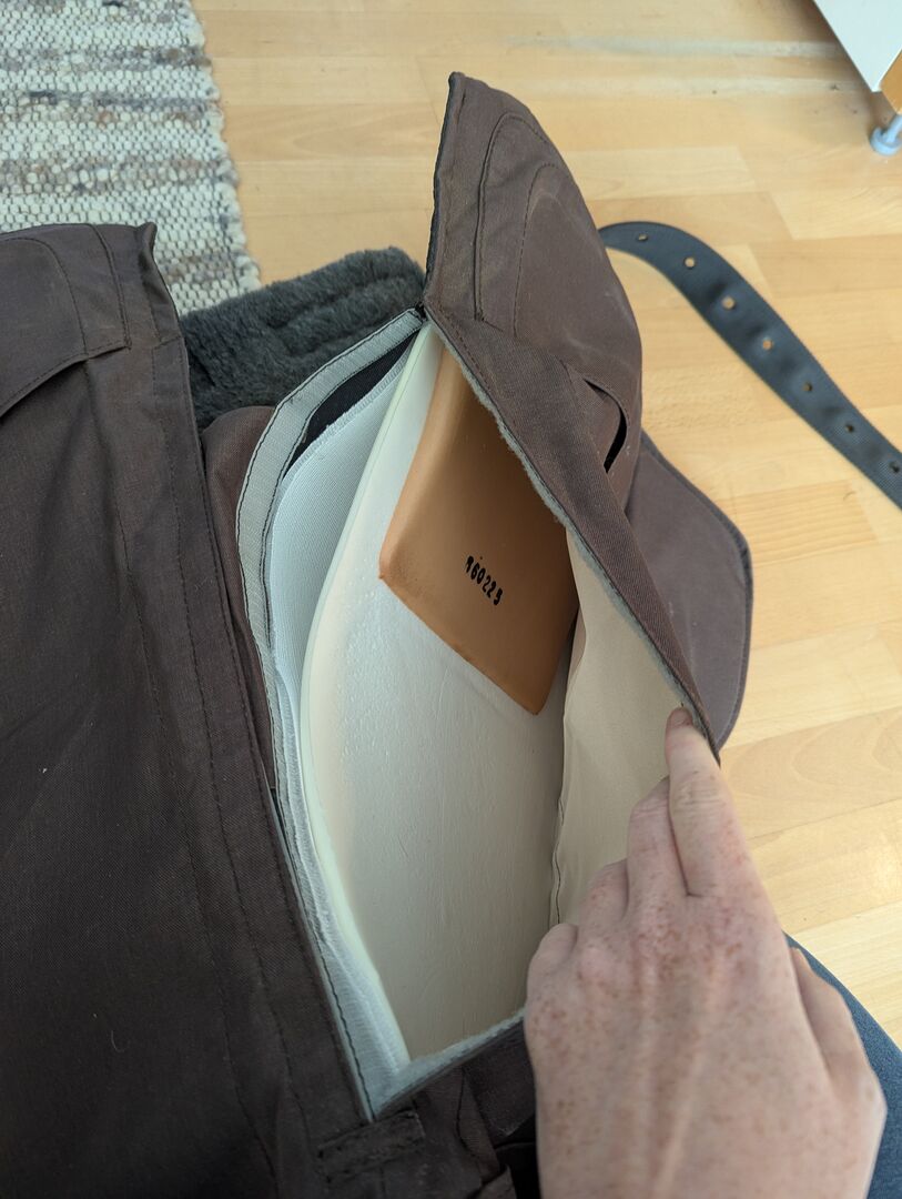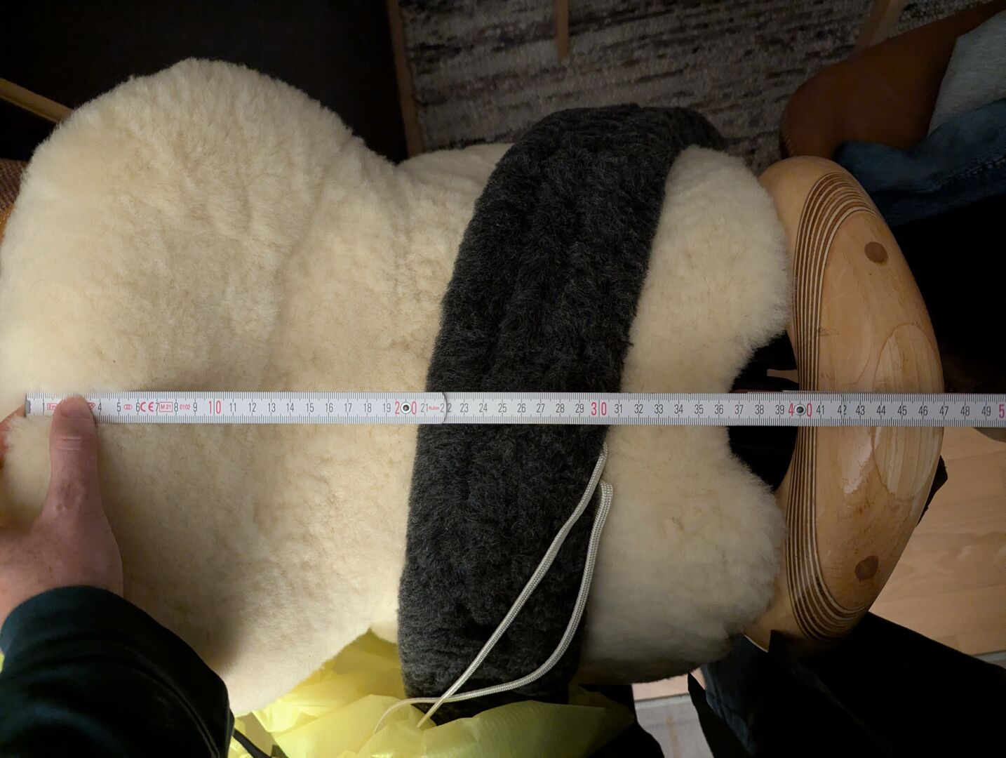 ROC Slimme Reiner RES 16-34/36 - Wordt weggegeven wegens verkoop van het paard. Natuurlijk leer, één keer geolied. Zoals je op de foto's kunt zien, zitten de eerste regendruppels erop. Na verloop van tijd krijgt het natuurlijke leer een heel mooi patina, dat je anders alleen kent van oude westernzadels. Twee krammen aan de achterkant voor het vastmaken van bagage. Zitting van lamsleer, superzacht en temperatuurregulerend. De vacht kan worden verwijderd, maar de zitting eronder is niet bedekt met leer.