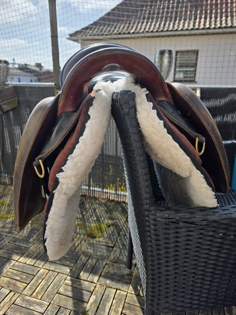 Podium kunststof boom maat 16" L (zwarte kunststof boom en witte panelen) met: - Stijgbeugels & riemen - Gewatteerde hoes van Sattelunterlagen & Mehr (echt lamsvel) - Zadel heeft gebruikssporen maar is niet beschadigd en volledig functioneel. Altijd droog opgeslagen