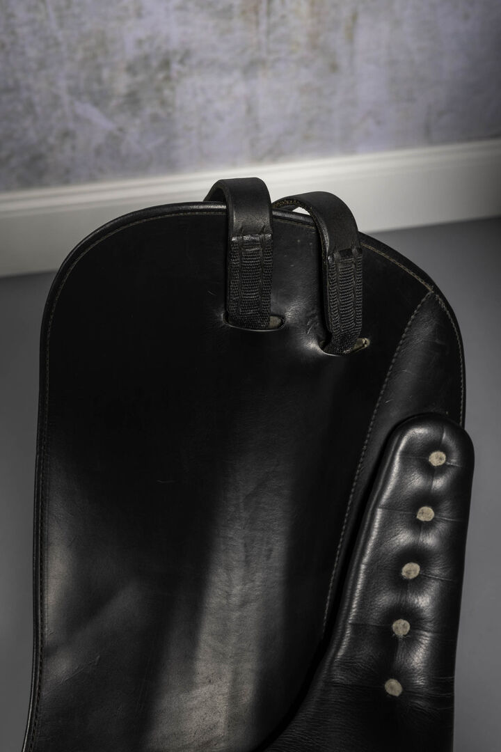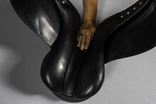 Je zit heel dicht op het paard, voelt zijn beweging en het is lekker zacht voor de bips. De knierollen zijn groot en het been ligt daardoor heel rustig.