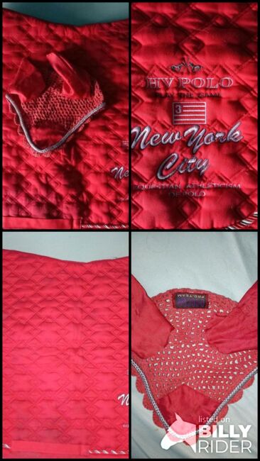 Rood HV Polo zadeldek met bijpassende vliegenoren - Rood HV Polo zadeldek in DR met bijpassende kleur vliegenoren van HKM in WB/Full.
