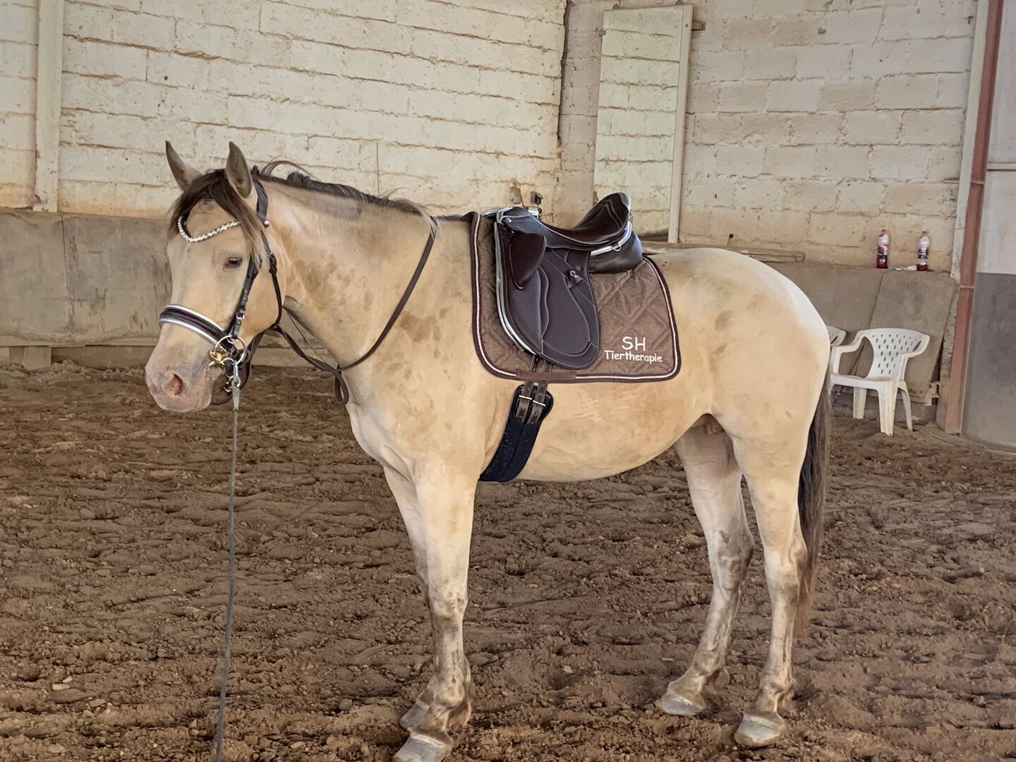 Royal Belgium Palomino Merrie 5Y Quater/Arabier - Lieve merrie! Geboren in 2018! 158cm hoog! Heeft papieren van de Koninklijke Belgische Palominos! In de pedigree staan Quater, Arabier en Cheval de Sport! Helaas niet geschikt als schoolpaard omdat ze iets te gevoelig is! Verder braaf in omgang en rijden! Met uitzondering van de galop in de hal, soms de angallopieren is nog steeds een beetje moeilijk, maar goed te doen! In het land gaat ze alleen en in de groep! Ik heb haar ook met mijn trainer gereden en ze was braaf en chill! Kan ook bitloos gereden worden! Ze is gevaccineerd tegen herpes/ influenza! Je kunt haar heel goed alleen beladen! Kleine AKU beschikbaar! Voeten geven gaat goed met vreemden maar een beetje sceptisch! Waarschijnlijk al een veulen gehad, dus ook zeer interessant voor de fokkerij! Zou ook willen ruilen voor een oudere merrie vanaf 8 jaar. Die geschikt zou zijn voor kinderen en rijlessen!