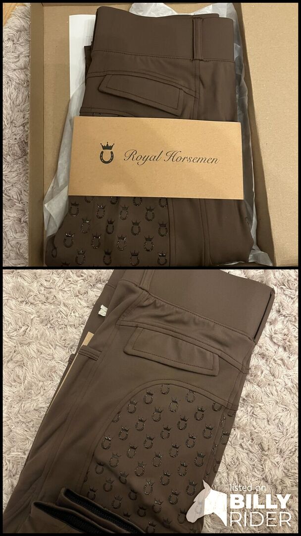 Royalhorsemen Briljant Bruin Mesh M NIEUW - Te koop hier een gloednieuwe paardrijlegging Mesh van Royalhorsemen in de kleur Brilliant Brown in maat M. Dit is de perfecte broek voor de zomer, maar kan ook op elk ander moment van het jaar gedragen worden😊 Neem contact met me op als je vragen hebt!