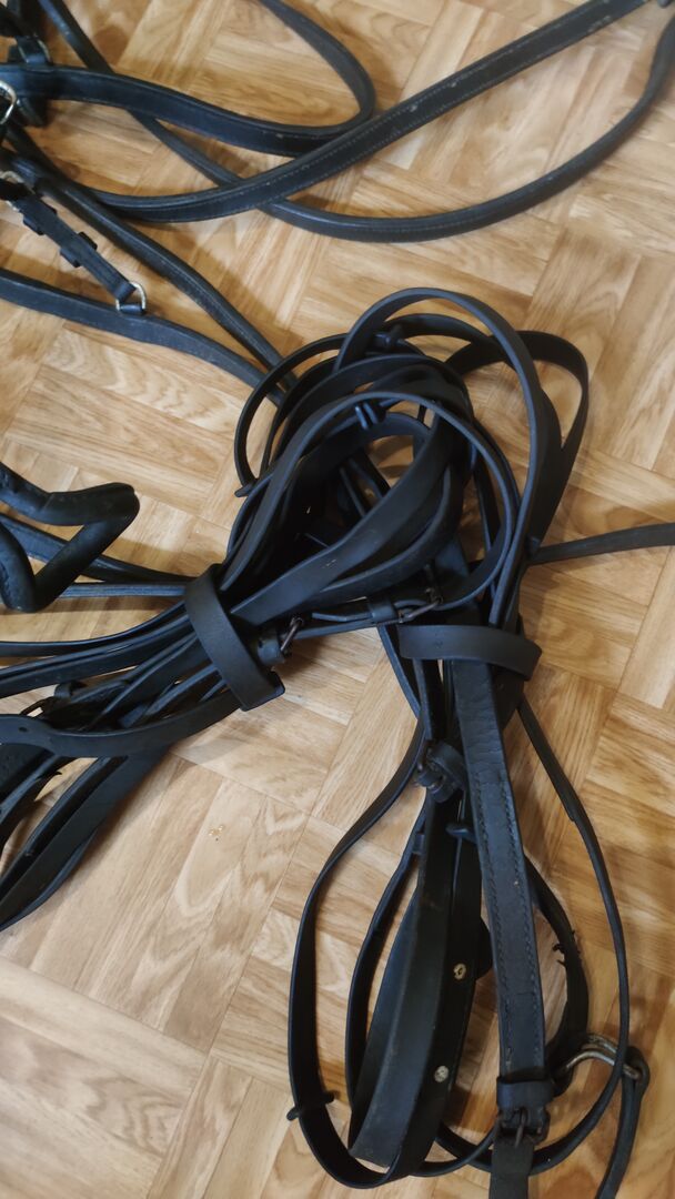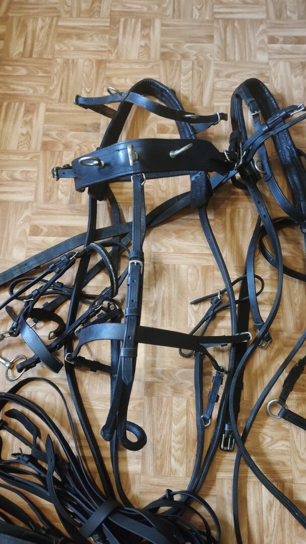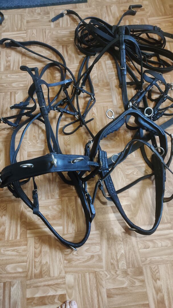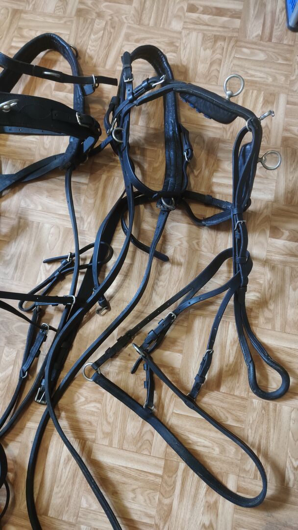 Ruilen/Verkopen Shetty tweepaards tuig - Te koop/ruil gebruikt tweepaards tuig voor shetties, zwart, gebruikt maar geen open naden, is lang niet gebruikt, is schoongemaakt en leer ingevet. Inclusief twee kopstukken en lange teugels en bitten.