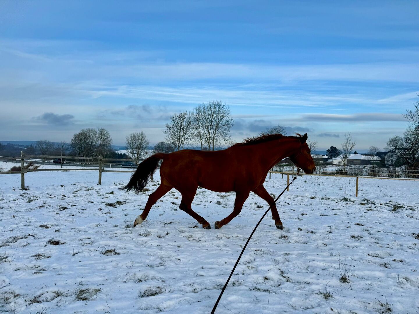 Donavan - deze ietwat bijzondere Rijnlander ruin, geboren in 2016 en 172 cm groot, zoekt een nieuw thuis bij iemand die veel ervaring heeft in de omgang met probleempaarden. Het is een werkwillig paard met zeer goede basisgangen en een geweldige afstamming. Helaas heeft hij de neiging om nieuwe ruiters op de proef te stellen. Hij moet daarom worden geplaatst in handen die hem met veel geduld en gedegen kennis ondersteunen en die niet meteen opgeven, zelfs niet bij tegenslagen. Omdat hij graag beweegt, zal hij alleen worden gegeven aan een open stal of actieve stal. Hij heeft nooit ziektes gehad. Alleen een lichte binnenstand van de voorbenen. Donavan is bereden in alle gangen in de rijbak, op de bak en in de wei. Geen beginner, herbeginner of kinderpaard. Hij is mensgericht en heeft een verzorger nodig. Vanwege zijn problemen onder het zadel wordt hij verkocht als voorwaardelijk rijdbaar. De ruin wordt alleen verkocht aan echt goede, ervaren handen.