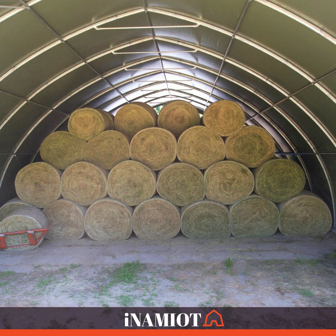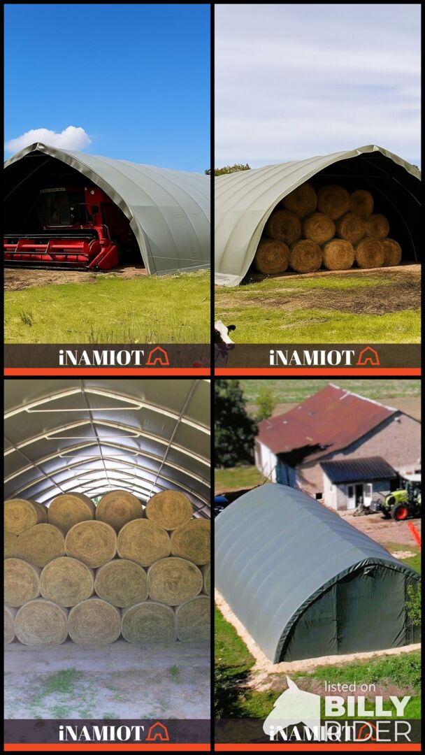 Voordelen op één blik: starke PVC-Plane 900 g/m², UV-Schutz 50+, hoge Reißfestigkeit, stabiele feuerverzinkte Stahlkonstruktion, keine Innenstützen - 100% nutzbarer Innenraum, gebogene Dachform für besseren Ablauf von Regen und Schnee, zwei große Eingangstore, schnelle Montage, mobil und flexibel einsetzbar, ideaal voor Heu, Stroh, Futtermittel, Maschinen, Geräte und Lagerwaren.